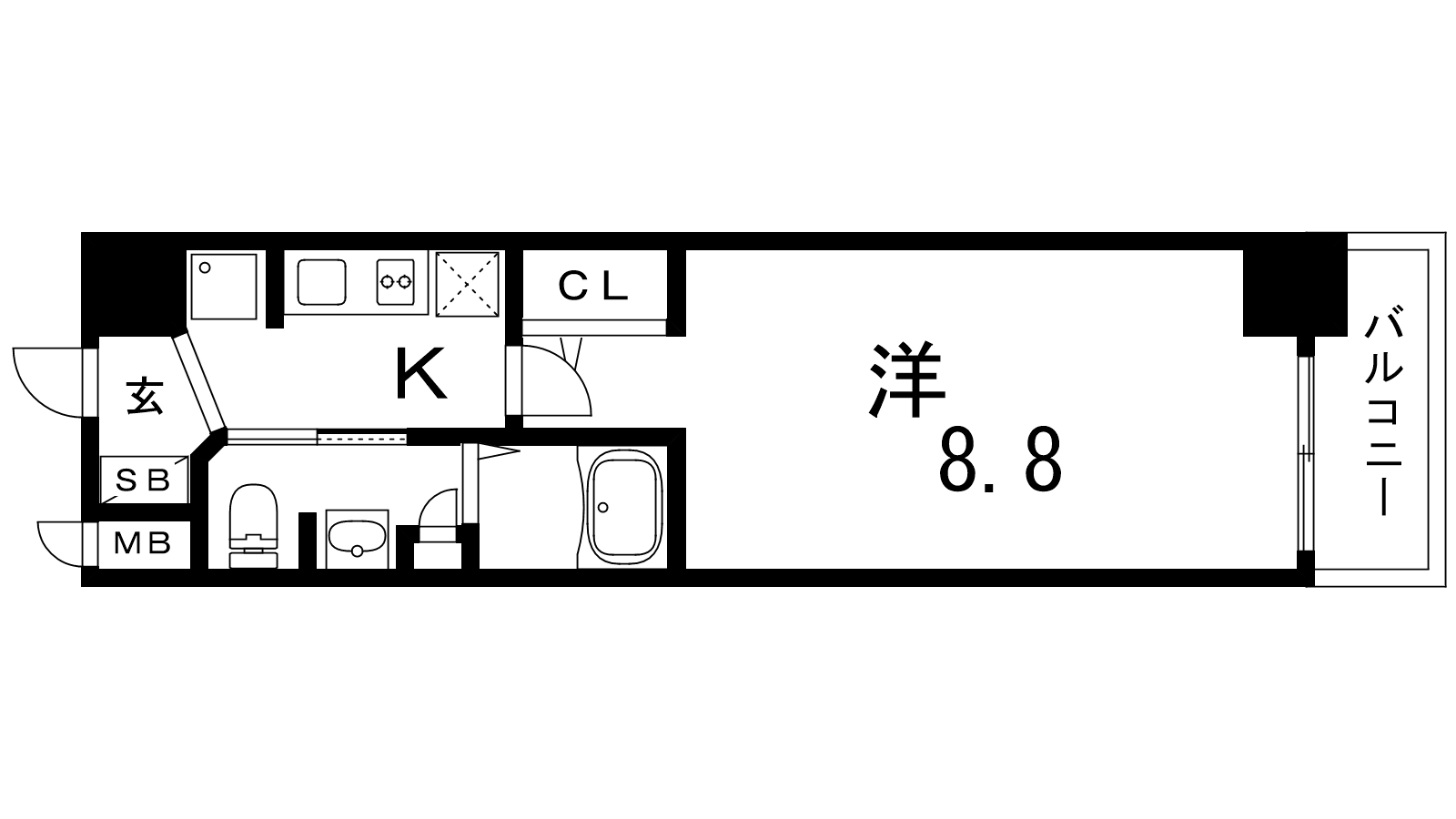 - K2.5帖、洋室8.8帖