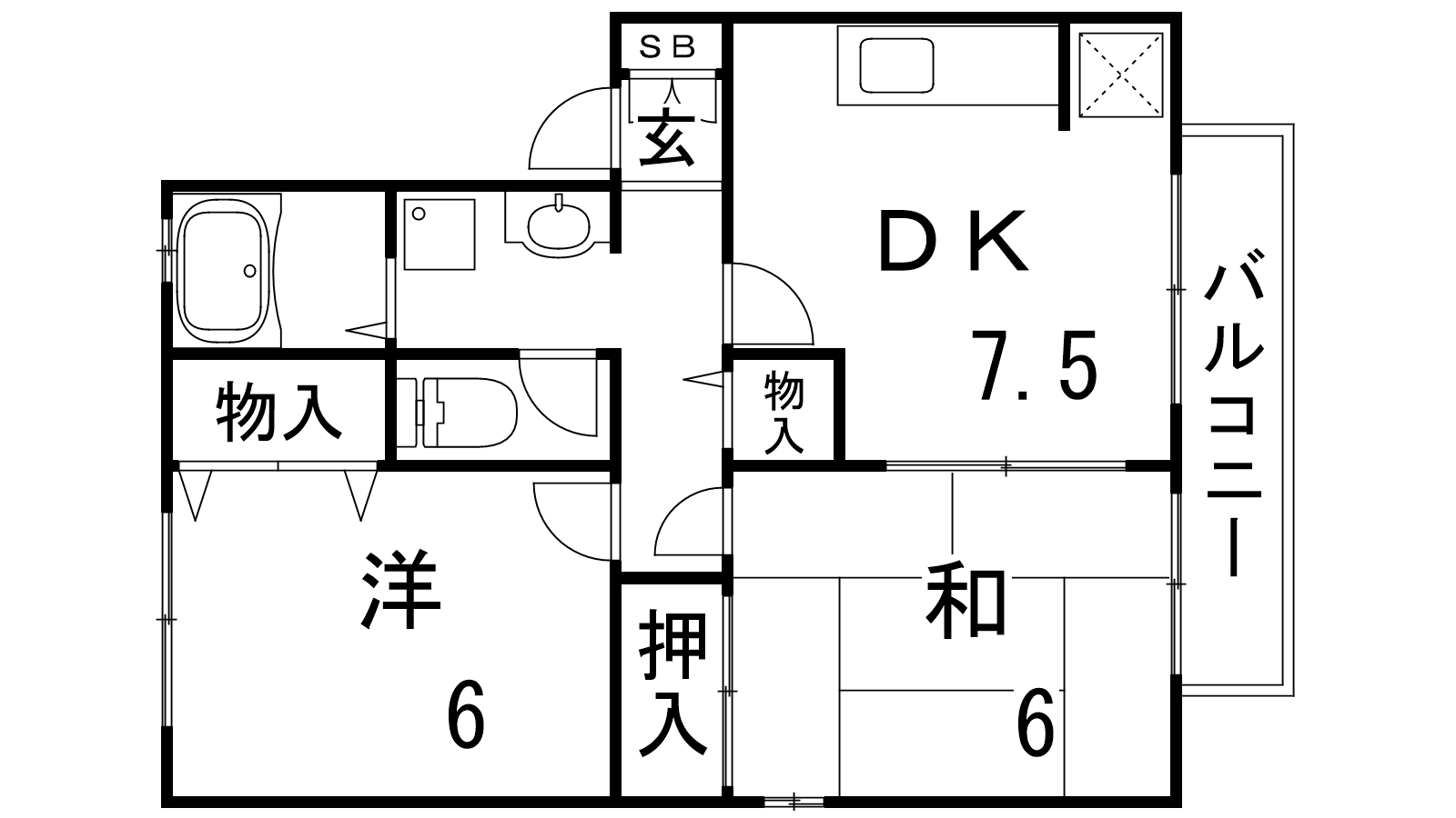 - DK7.5帖、洋室6帖、和室6帖