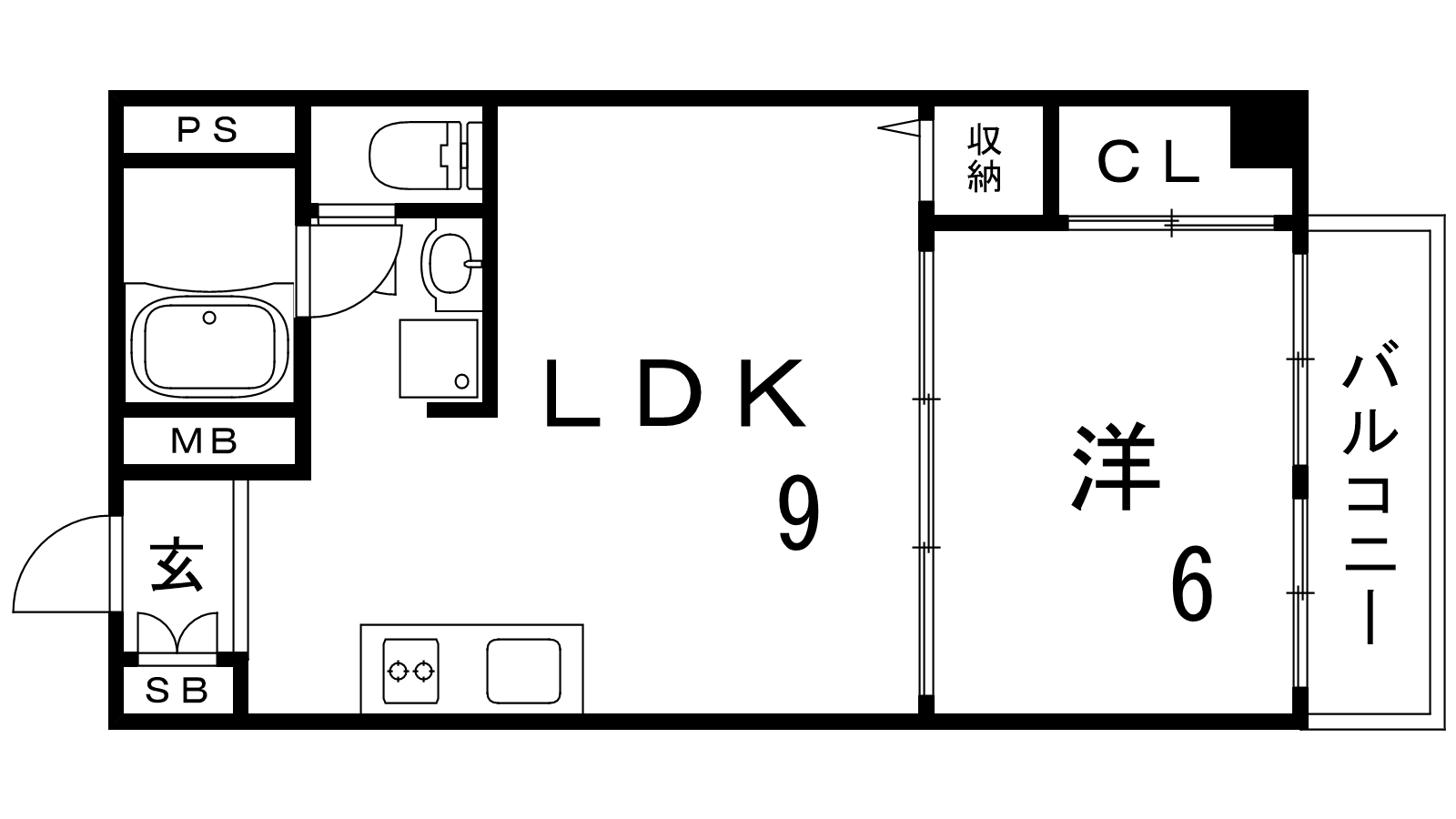 - LDK9帖、洋室6帖