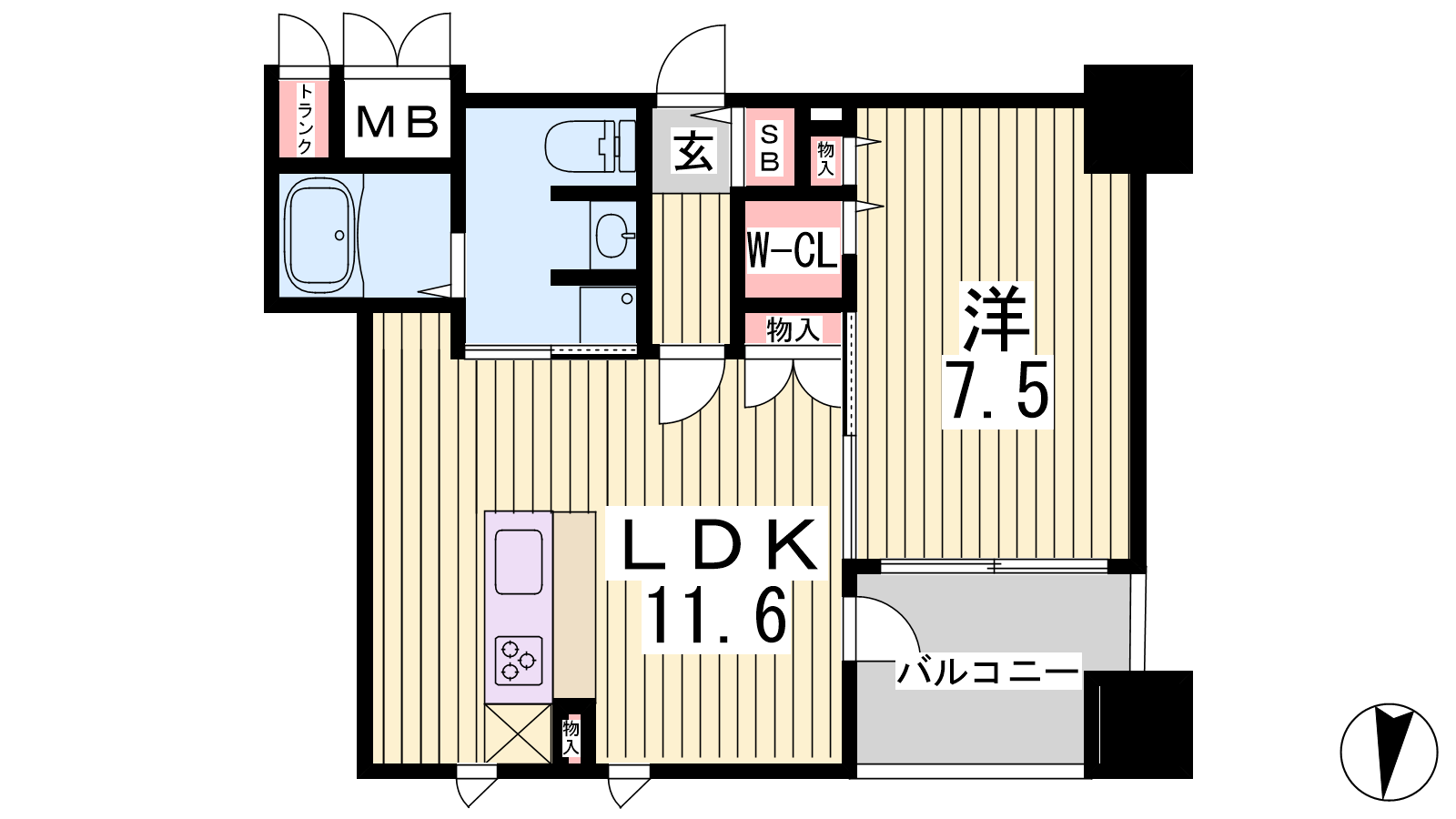 - LDK11.6帖、洋室7.5帖