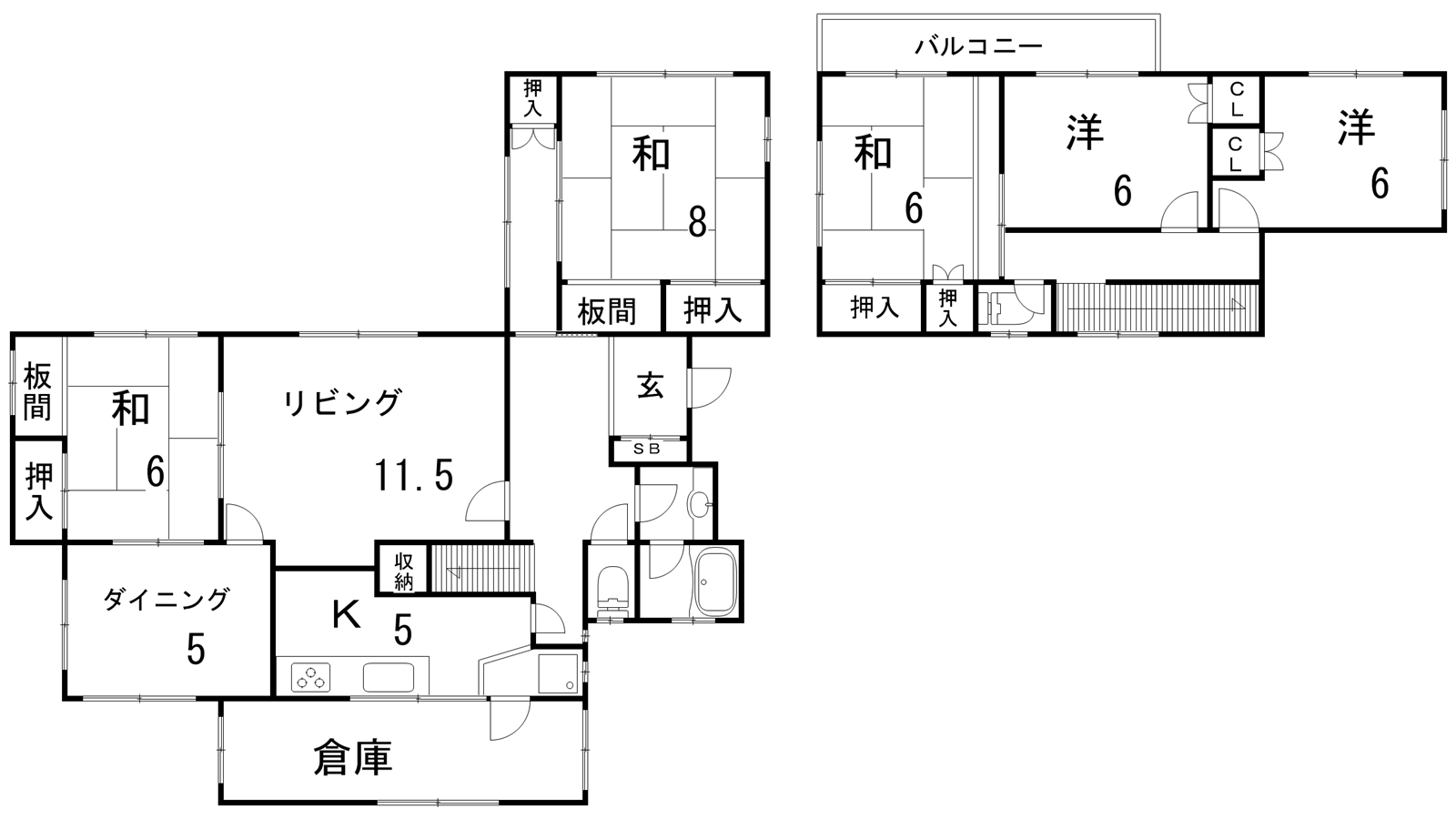 - LDK16.5帖、和室6帖、和室6帖、和室8帖、洋室6帖