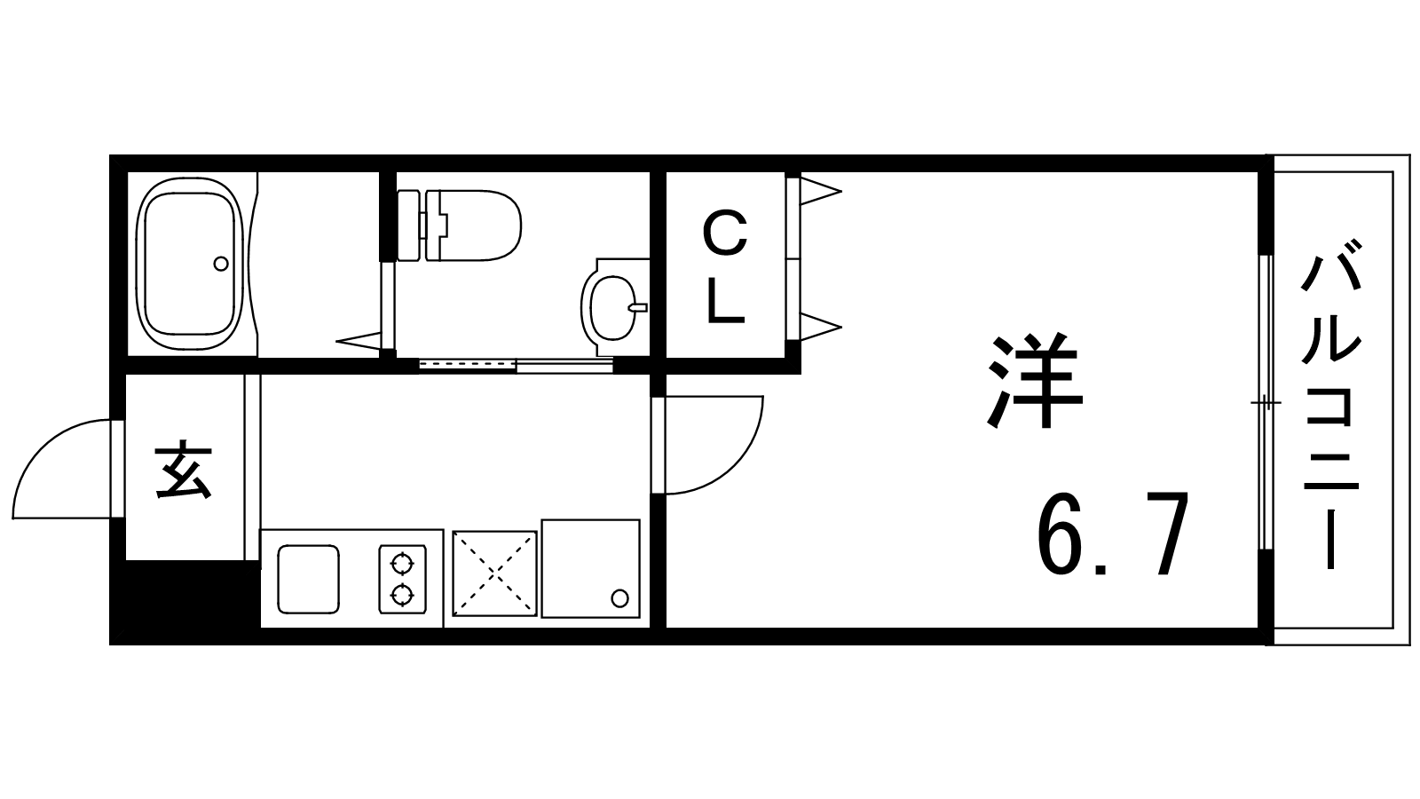 - K2.5帖、洋室6.7帖