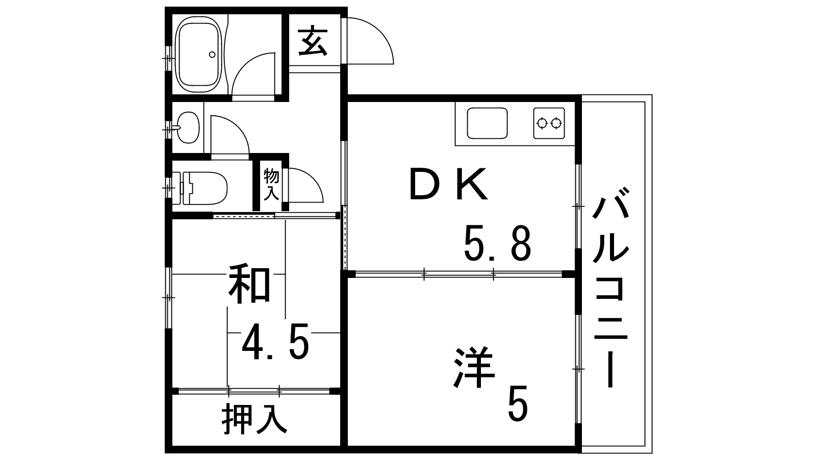 - DK5.8帖、和室4.5帖、洋室5帖