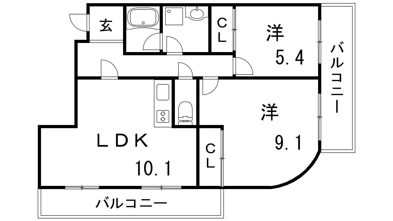 - LDK10.1帖、洋室9.1帖、洋室5.4帖