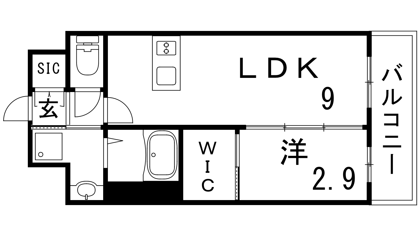 - LDK9帖、洋室2.9帖