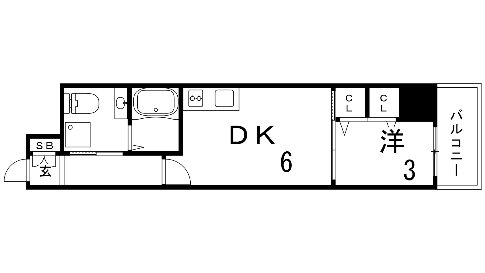 - DK6帖、洋室3帖