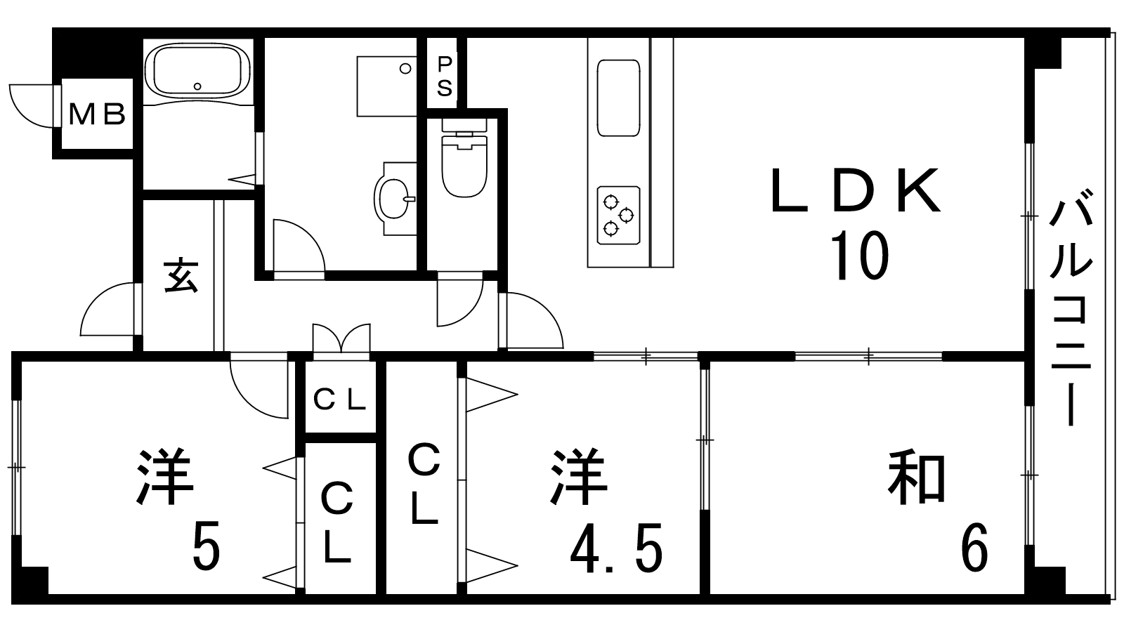 - LDK10帖、洋室5帖、洋室4.5帖、和室6帖