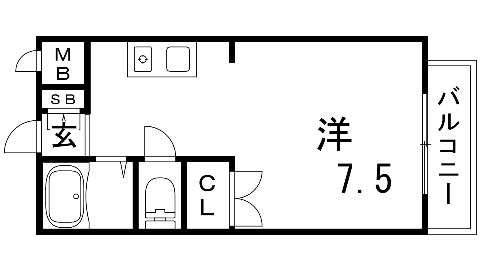 - K2.5帖、洋室7.5帖