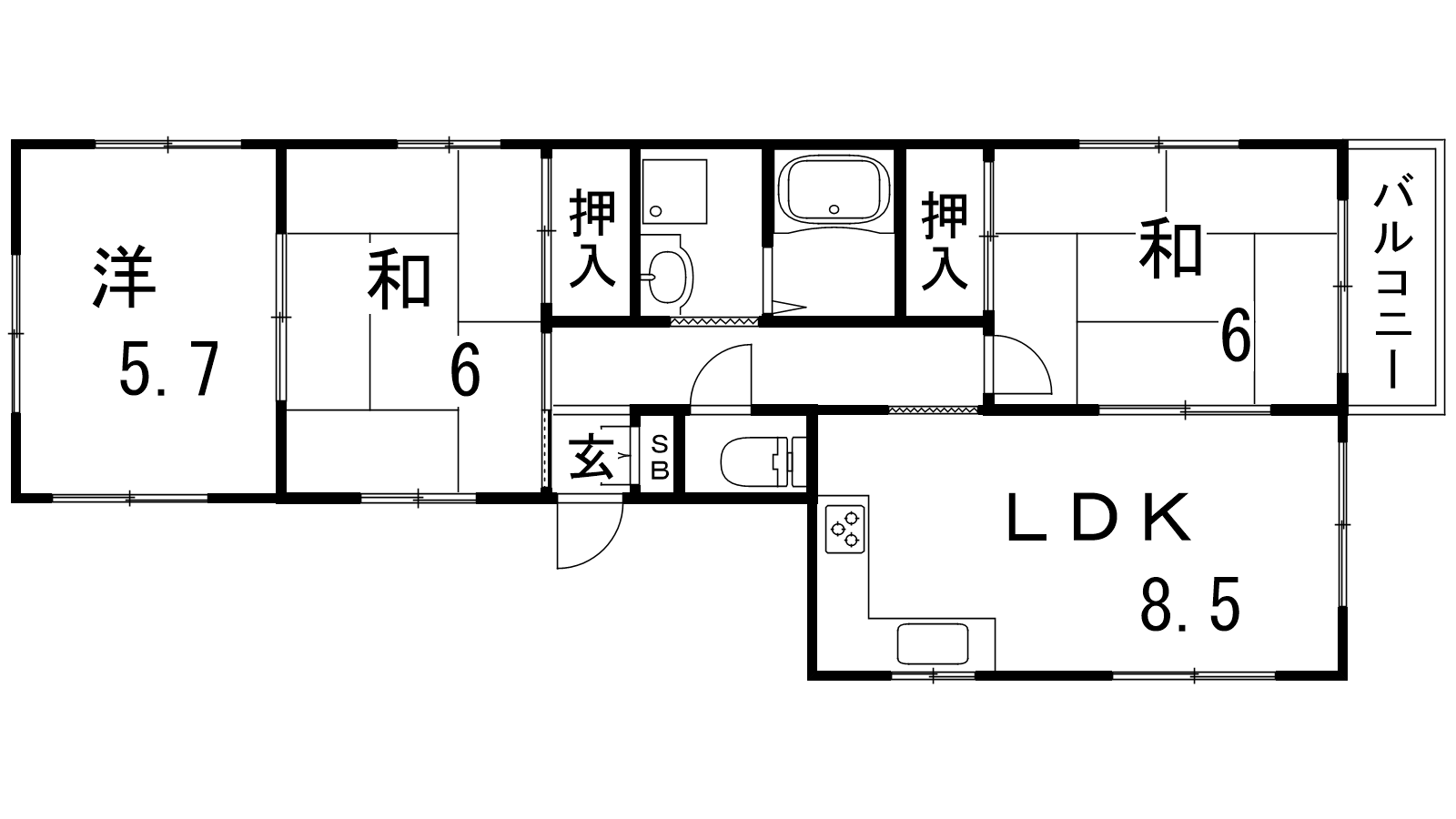 - LDK8.5帖、和室6帖、和室6帖、洋室5.7帖