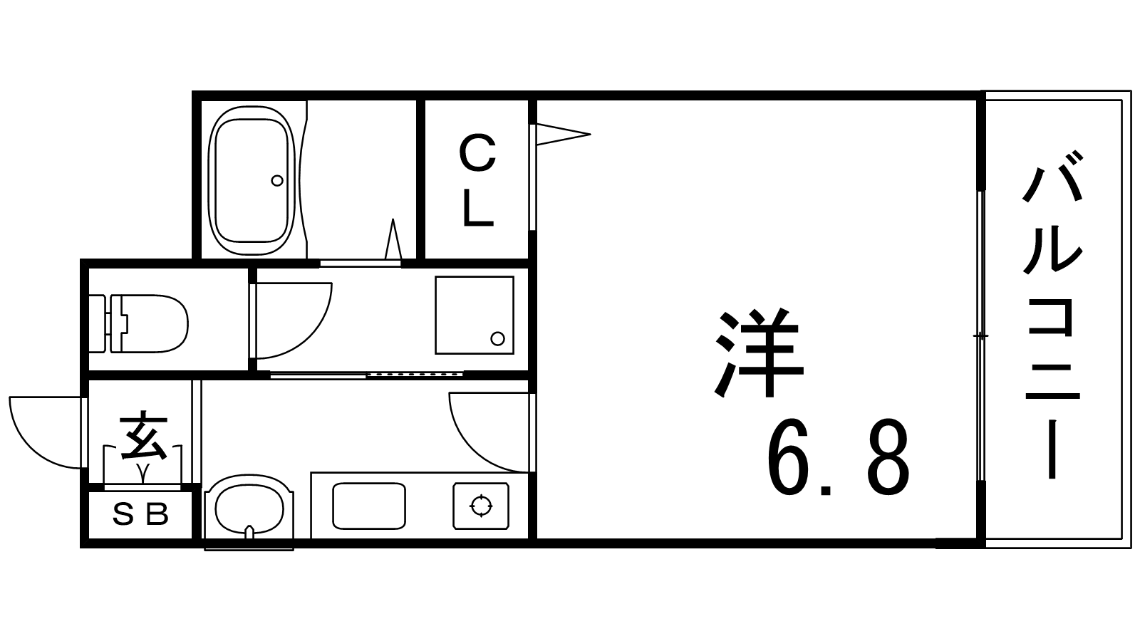 - K2帖、洋室6.8帖