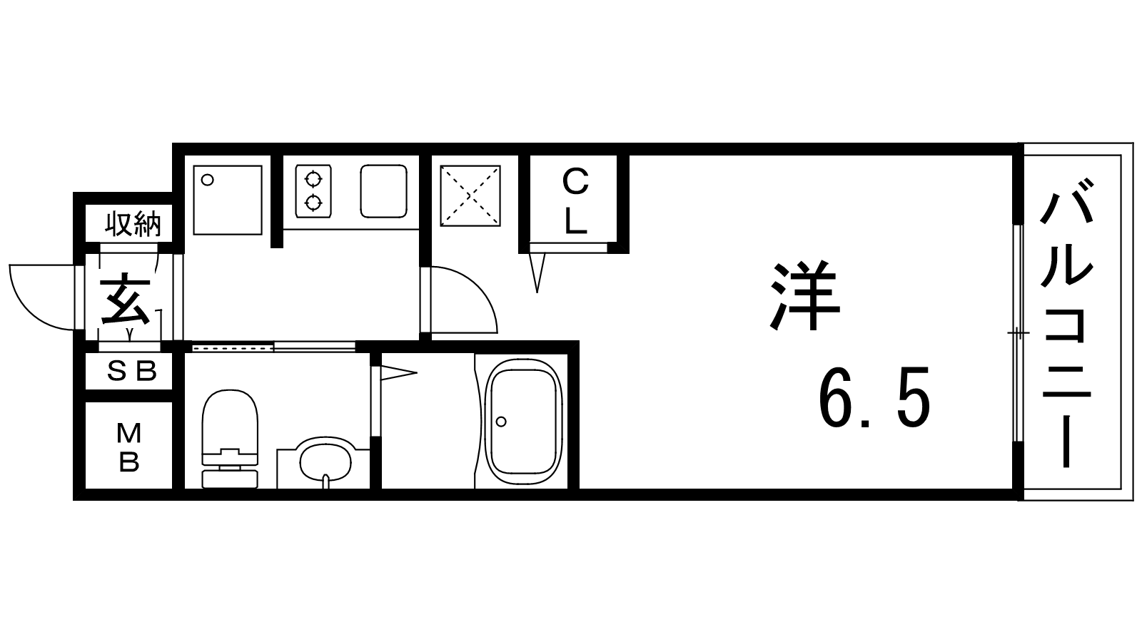 - K2帖、洋室6.5帖