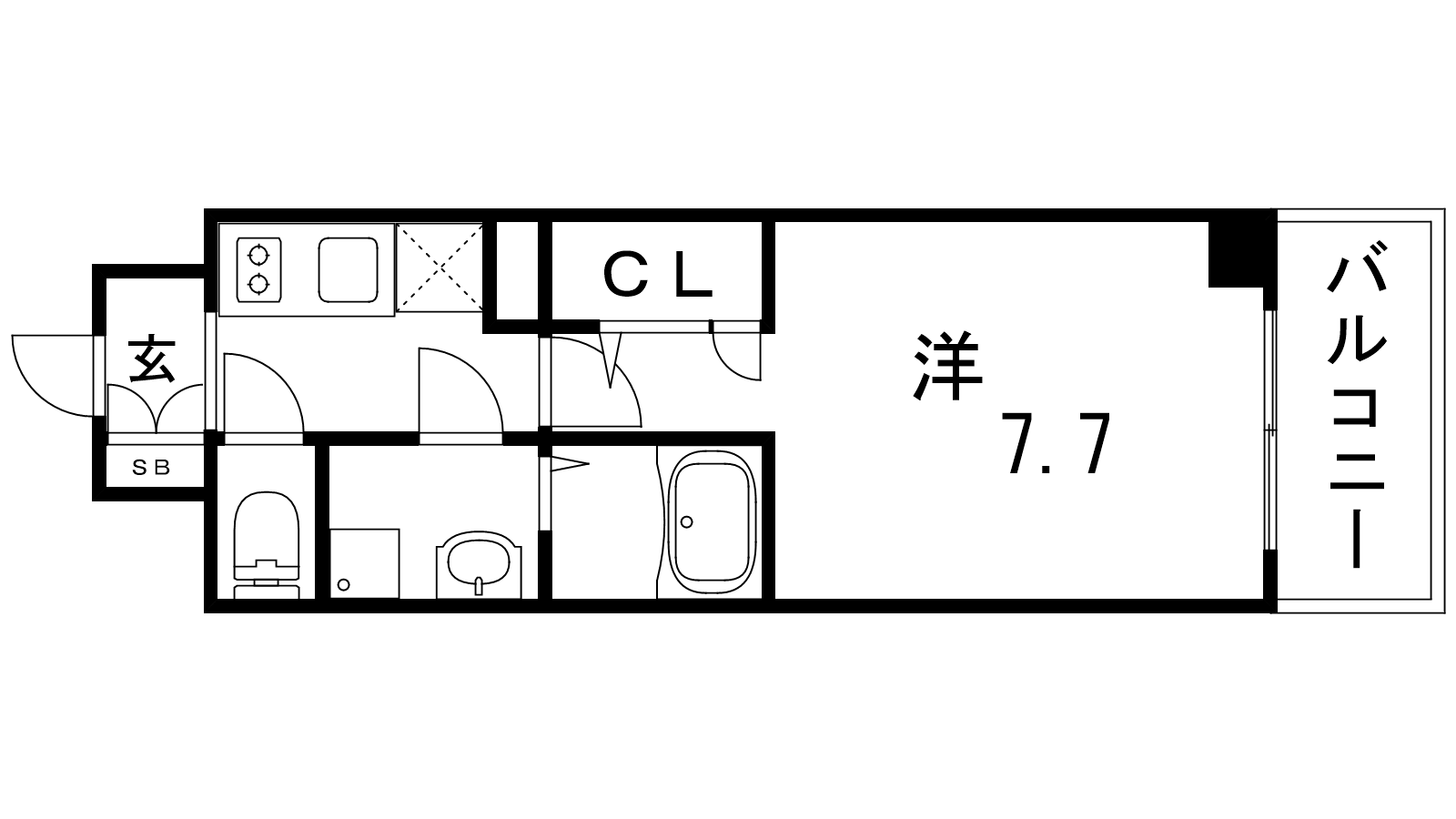 - K3帖、洋室7.7帖
