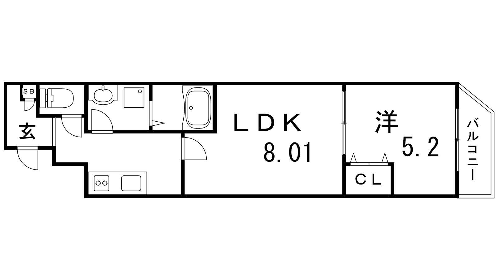 - LDK8.07帖、洋室5.2帖