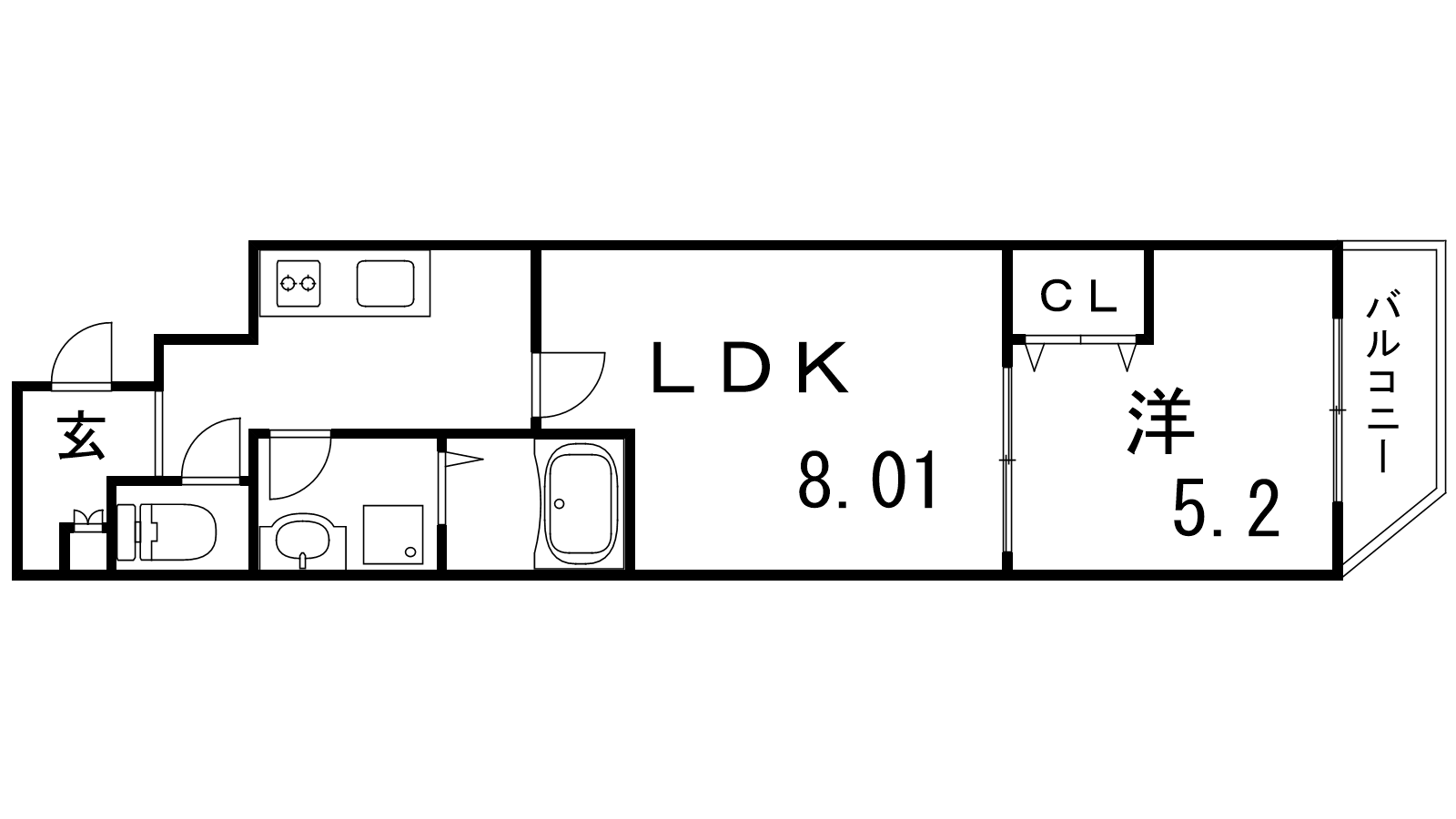 - LDK8.07帖、洋室5.2帖