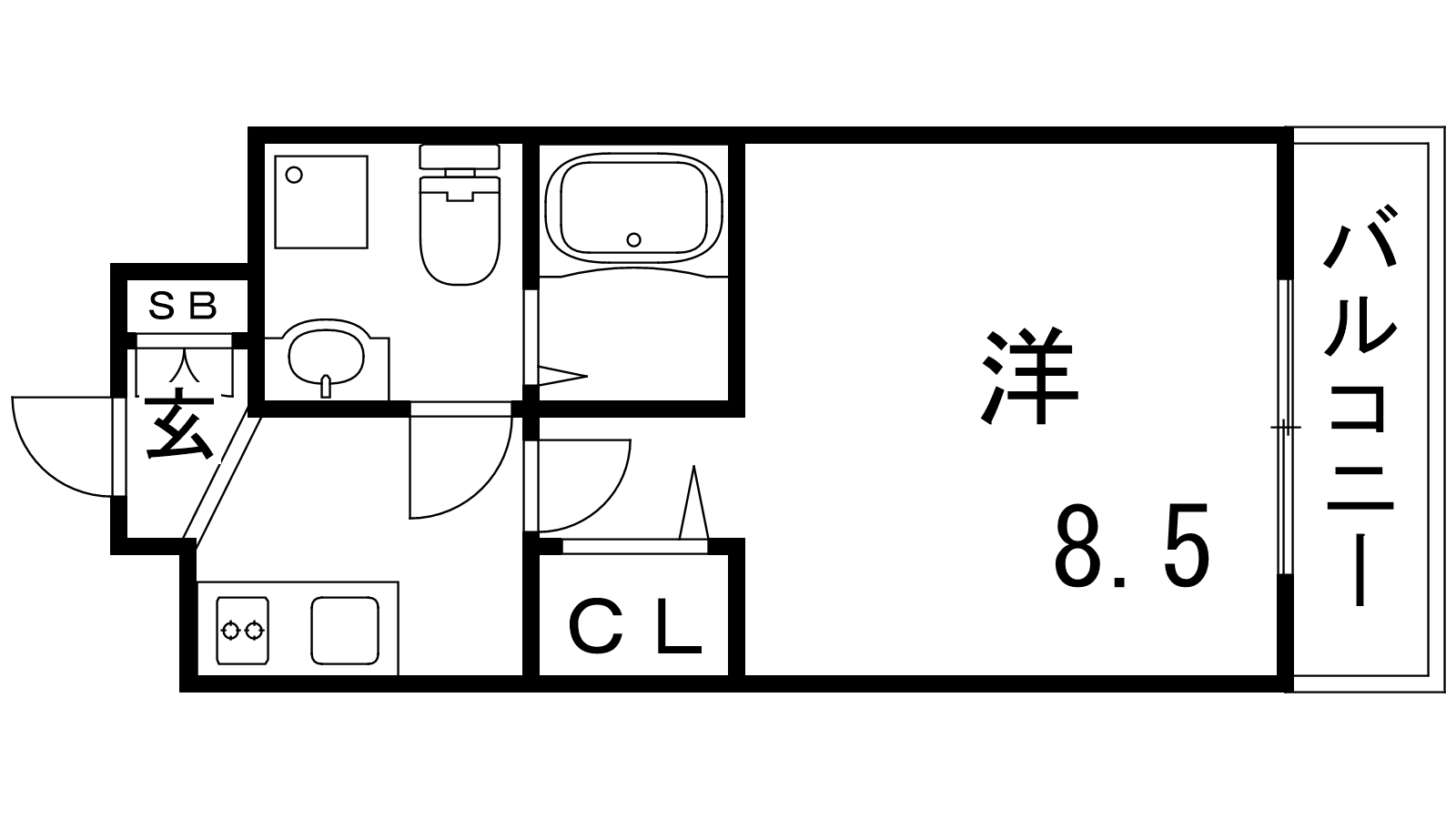 - K2帖、洋室8.5帖