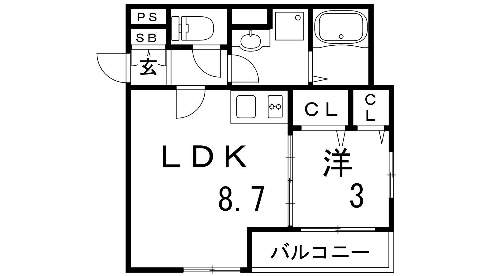 - 洋室3帖、LDK8.7帖