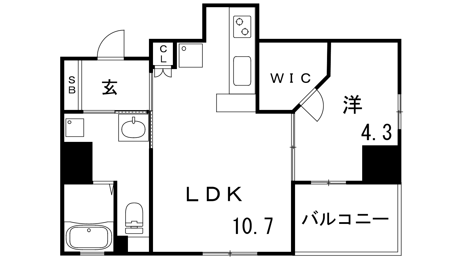 - LDK10.7帖、洋室4.3帖