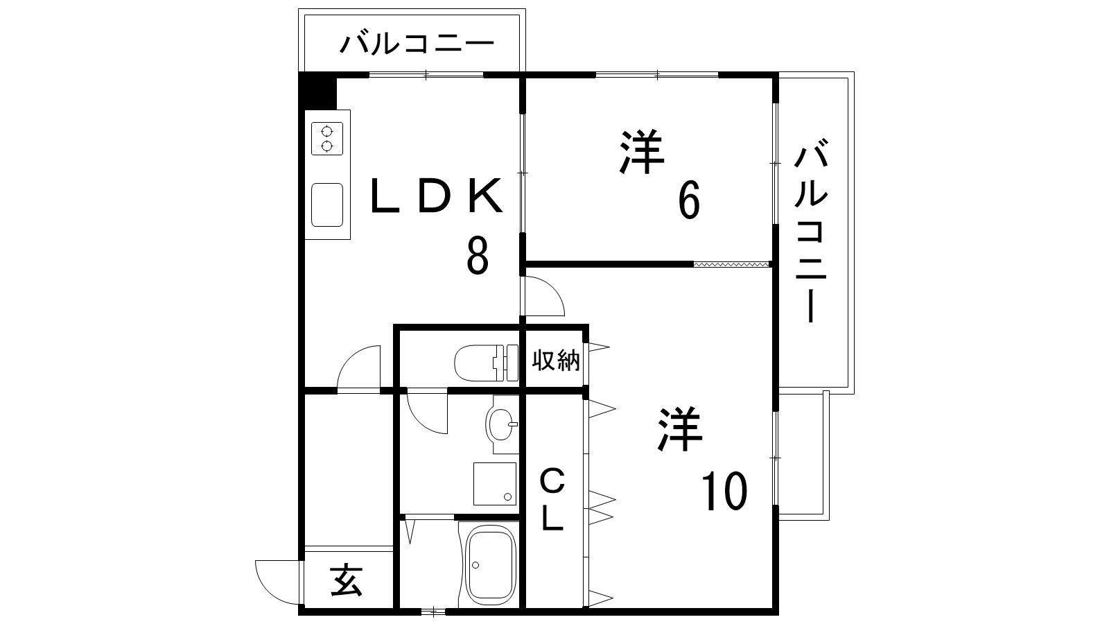 - 洋室10帖、洋室6帖、LDK8帖