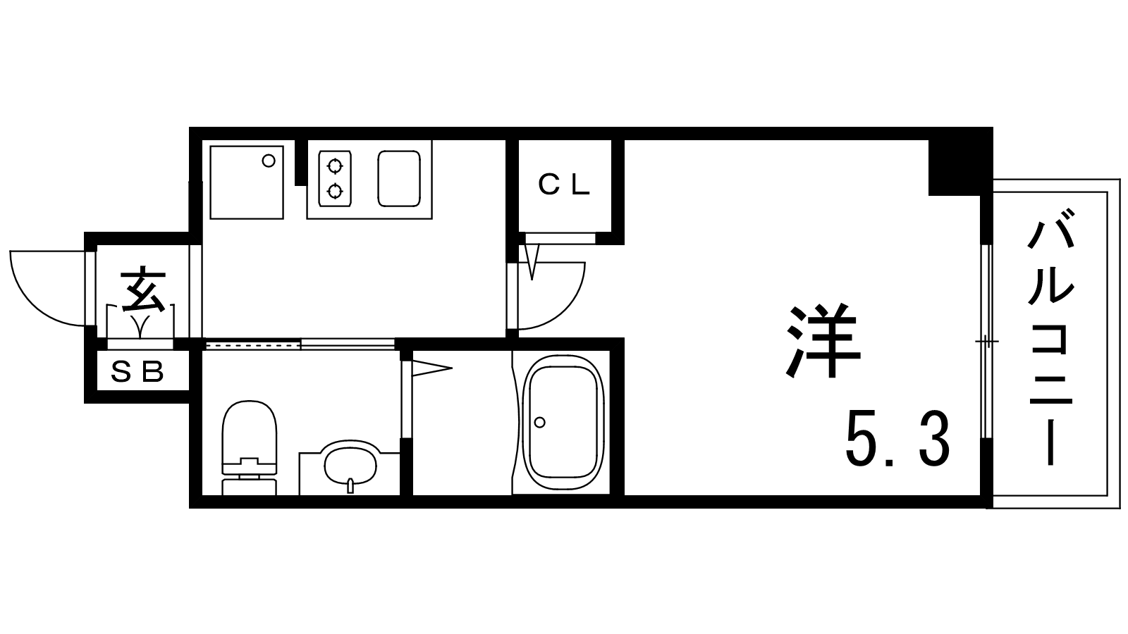 - K3帖、洋室5.3帖