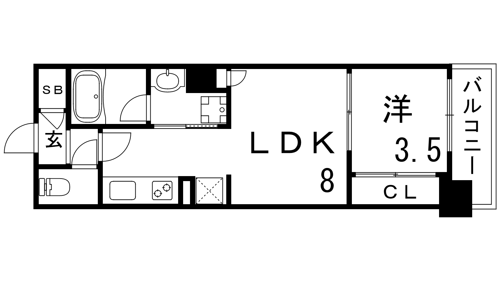 - LDK8帖、洋室3.5帖