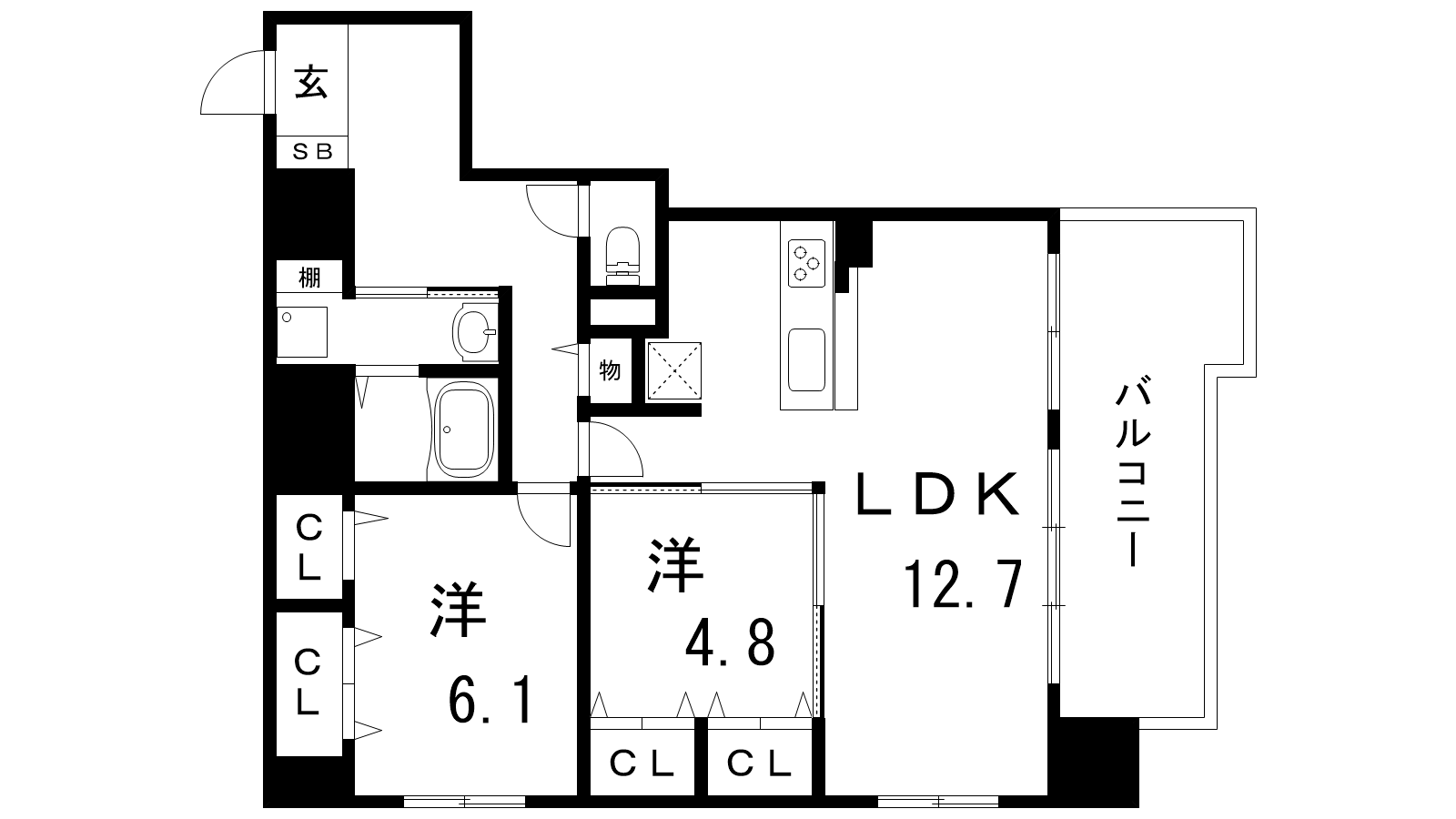 - LDK12.7帖、洋室6.1帖、洋室4.8帖