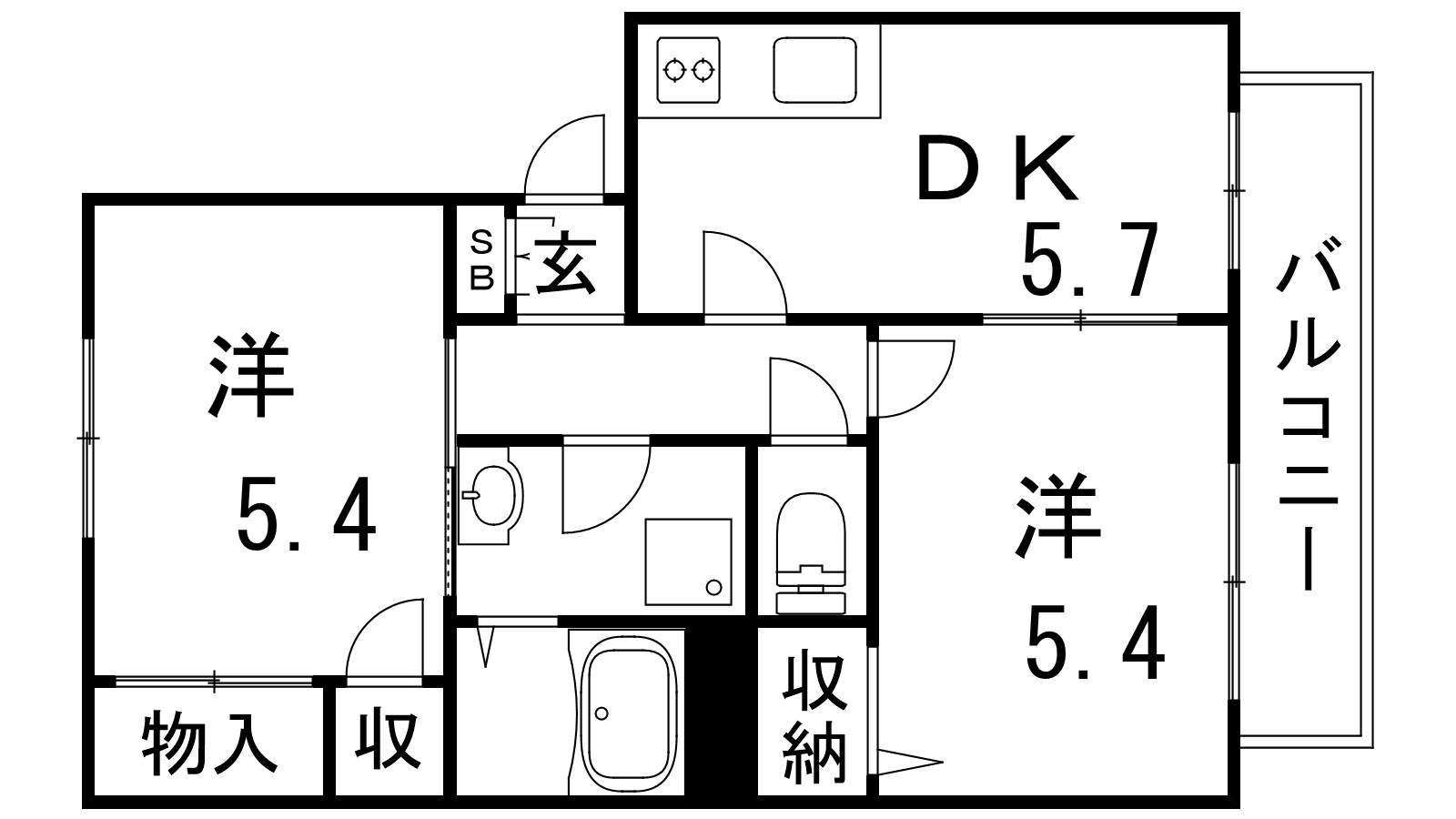 - DK5.7帖、洋室5.4帖、洋室5.4帖