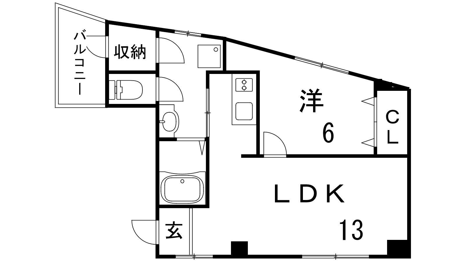 - LDK13帖、洋室6帖