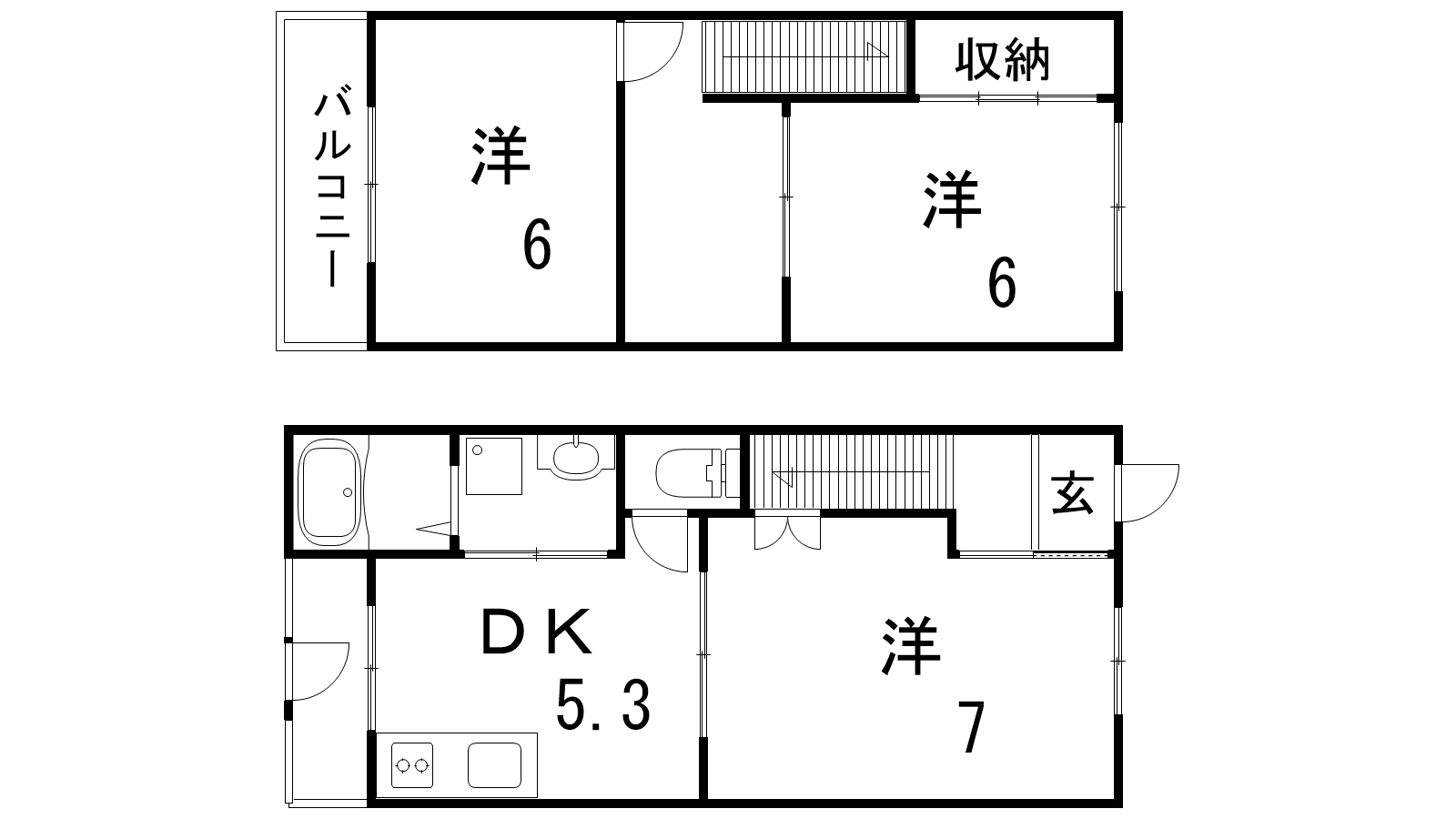 - DK5.3帖、洋室6帖、洋室6帖、洋室7帖
