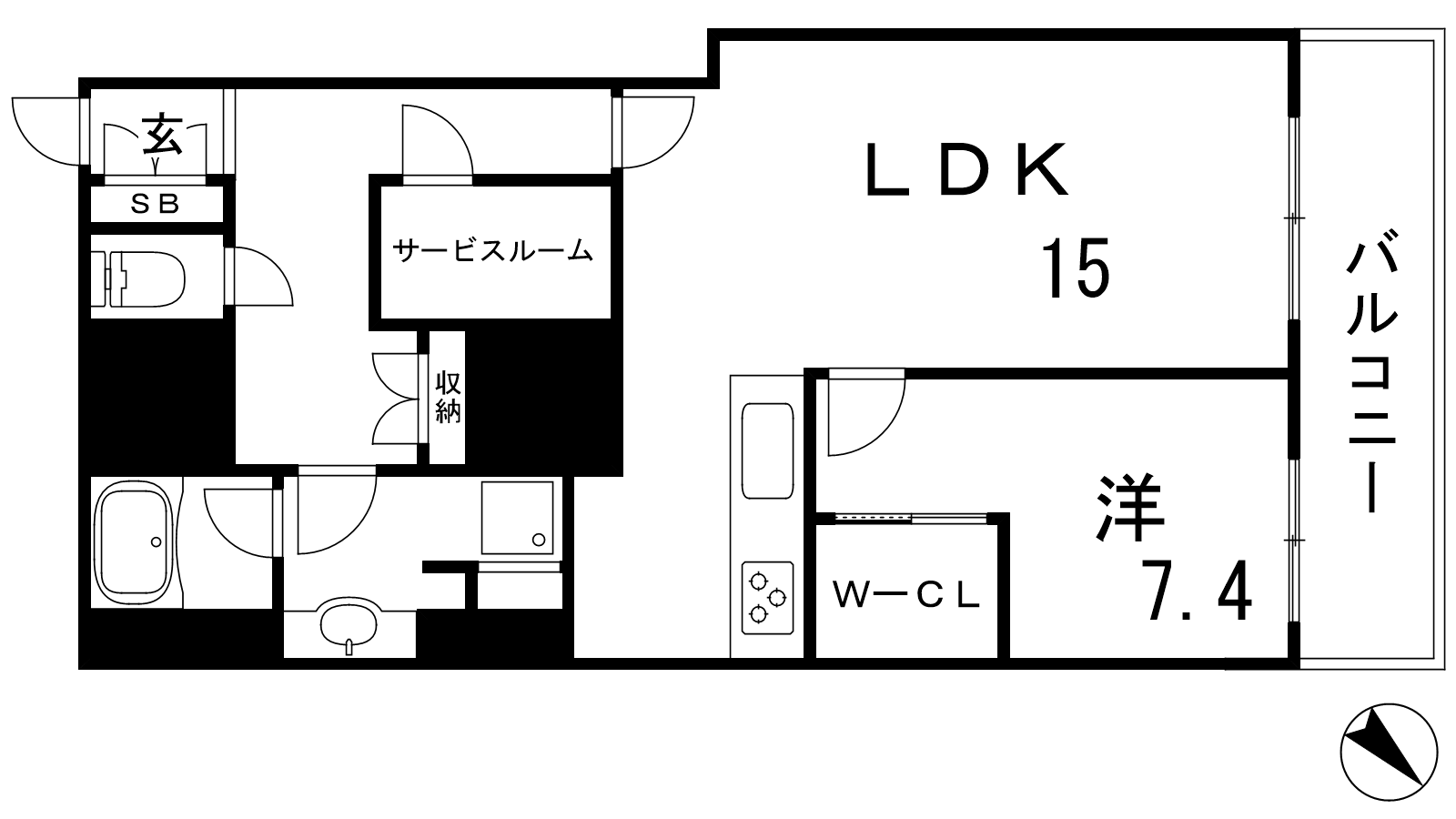 - LDK14.8帖、洋室7.4帖