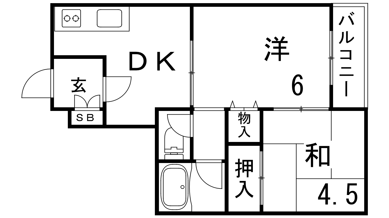 - DK4.5帖、洋室6帖、和室4.5帖