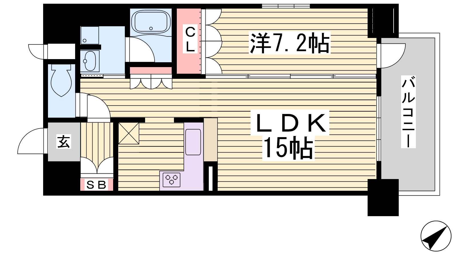 - LDK15帖、洋室7.2帖