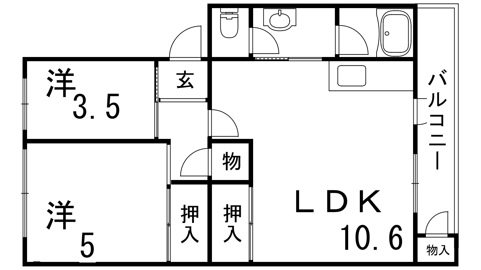 - LDK10.6帖、洋室5帖、洋室3.5帖
