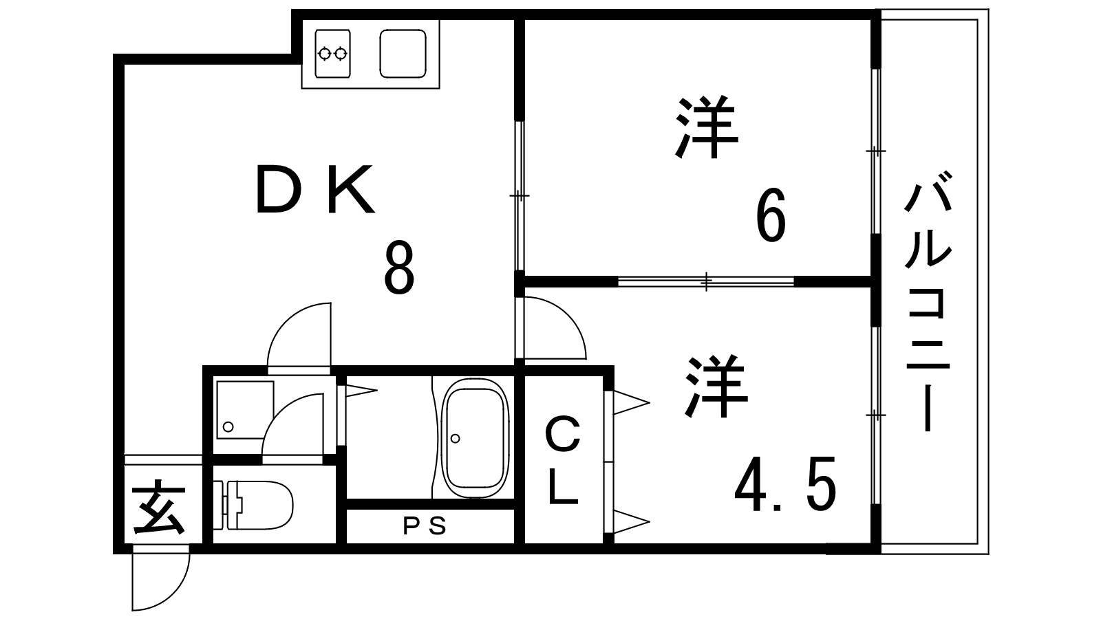 - DK8帖、洋室4.5帖、洋室6帖