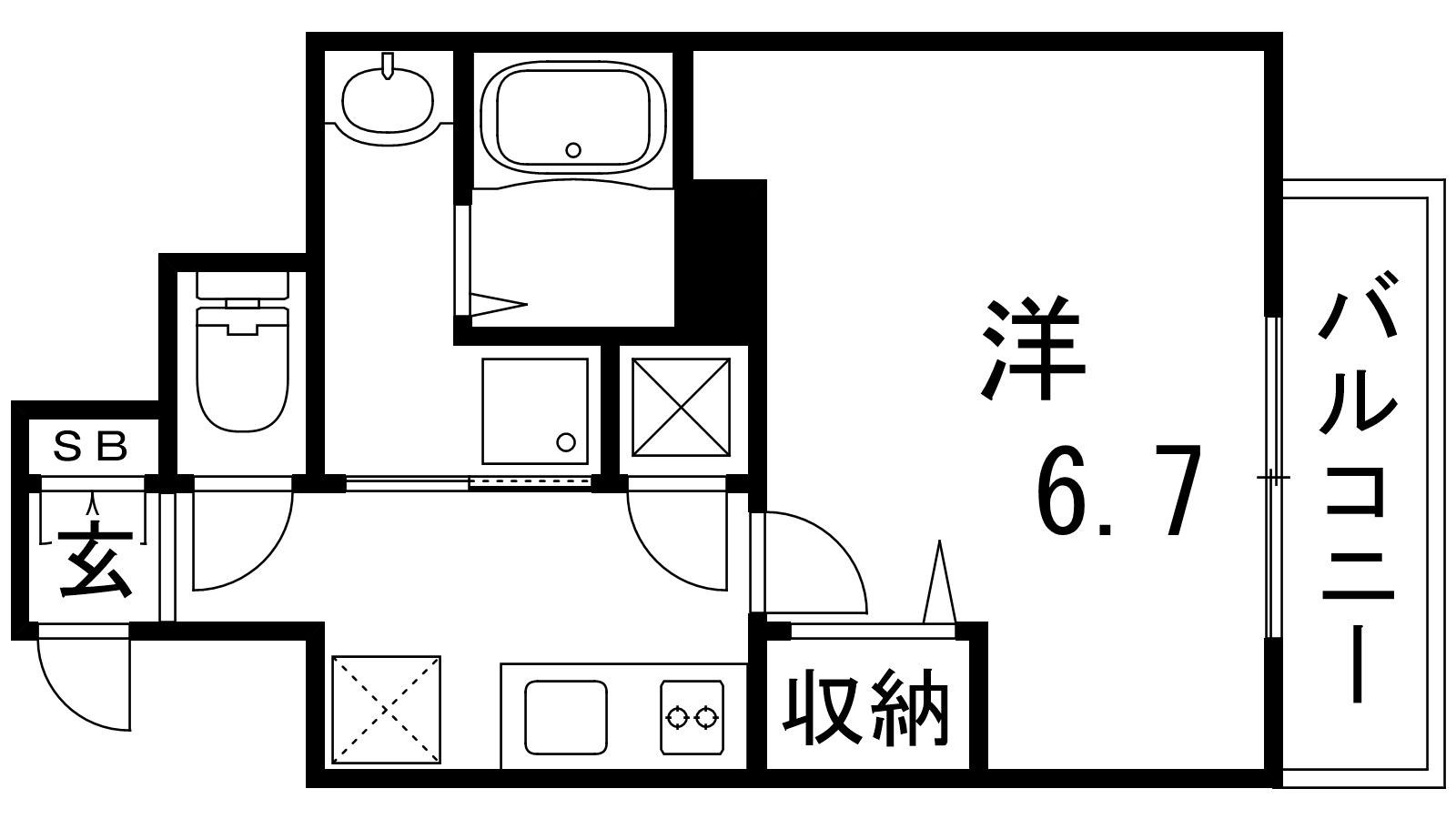 - K2帖、洋室6.7帖