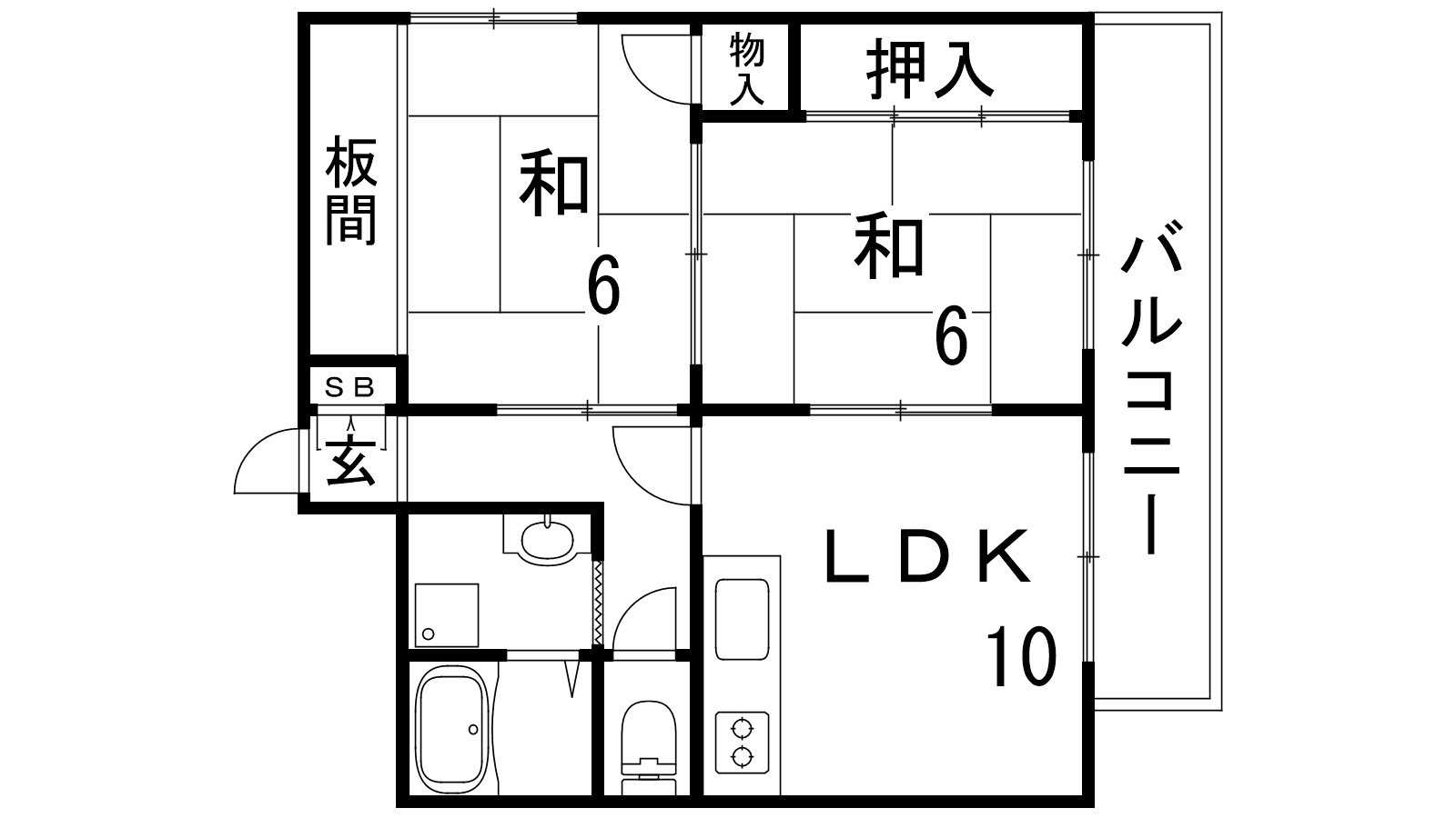 - LDK10帖、和室6帖、和室6帖
