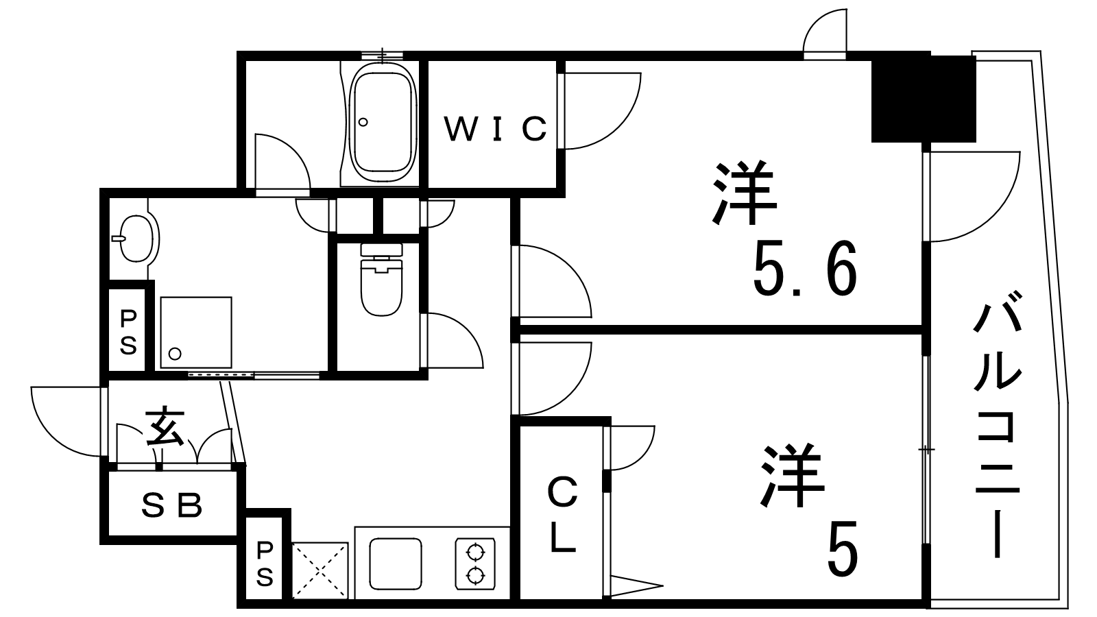 - 洋室5.6帖、洋室5帖