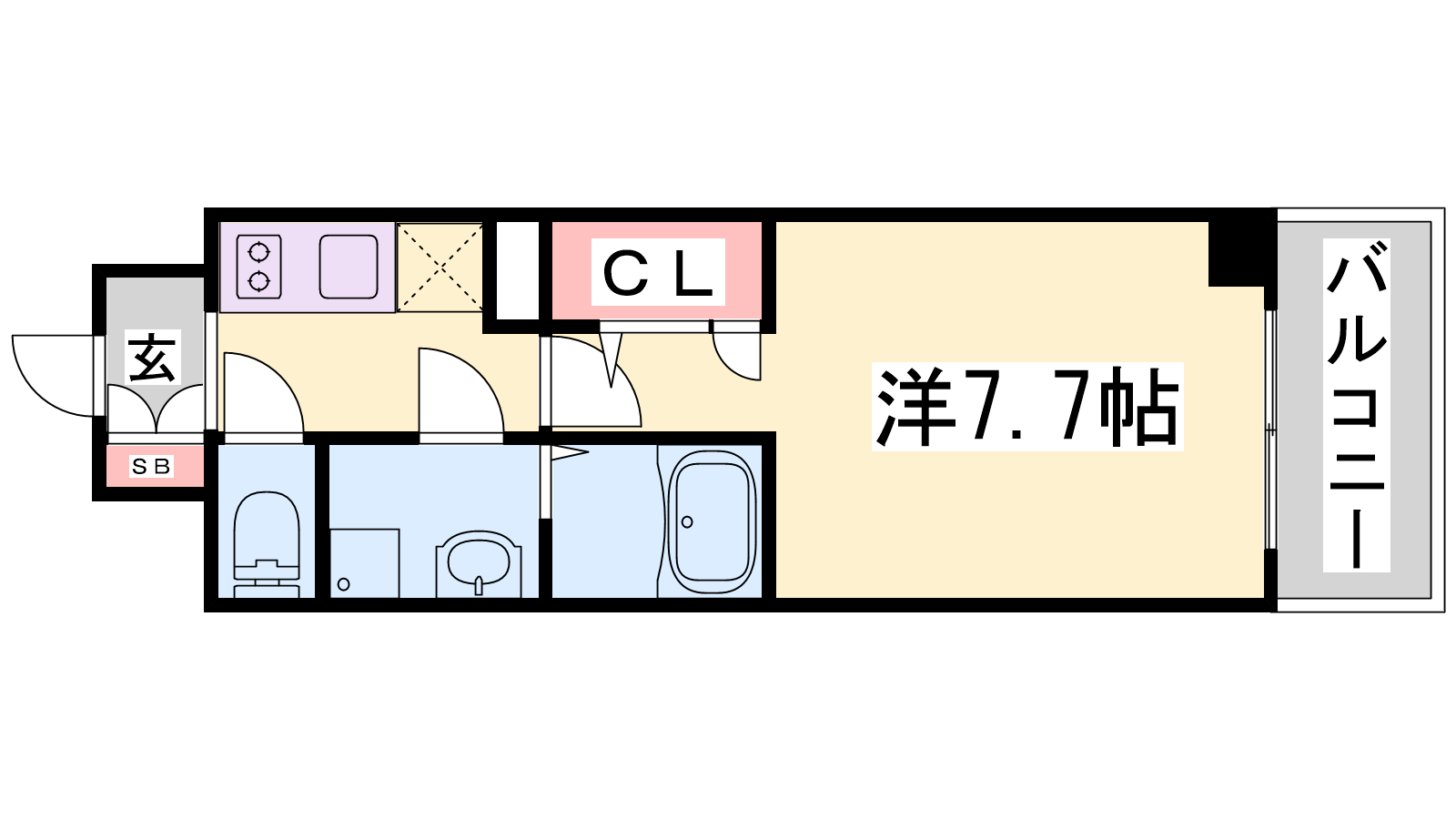 - K3帖、洋室7.7帖
