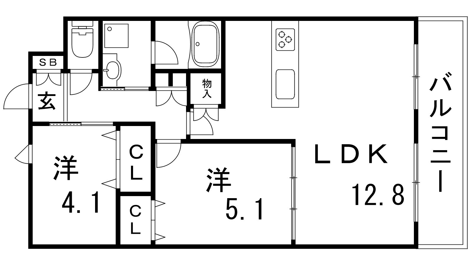 - LDK12.8帖、洋室5.1帖、洋室4.1帖