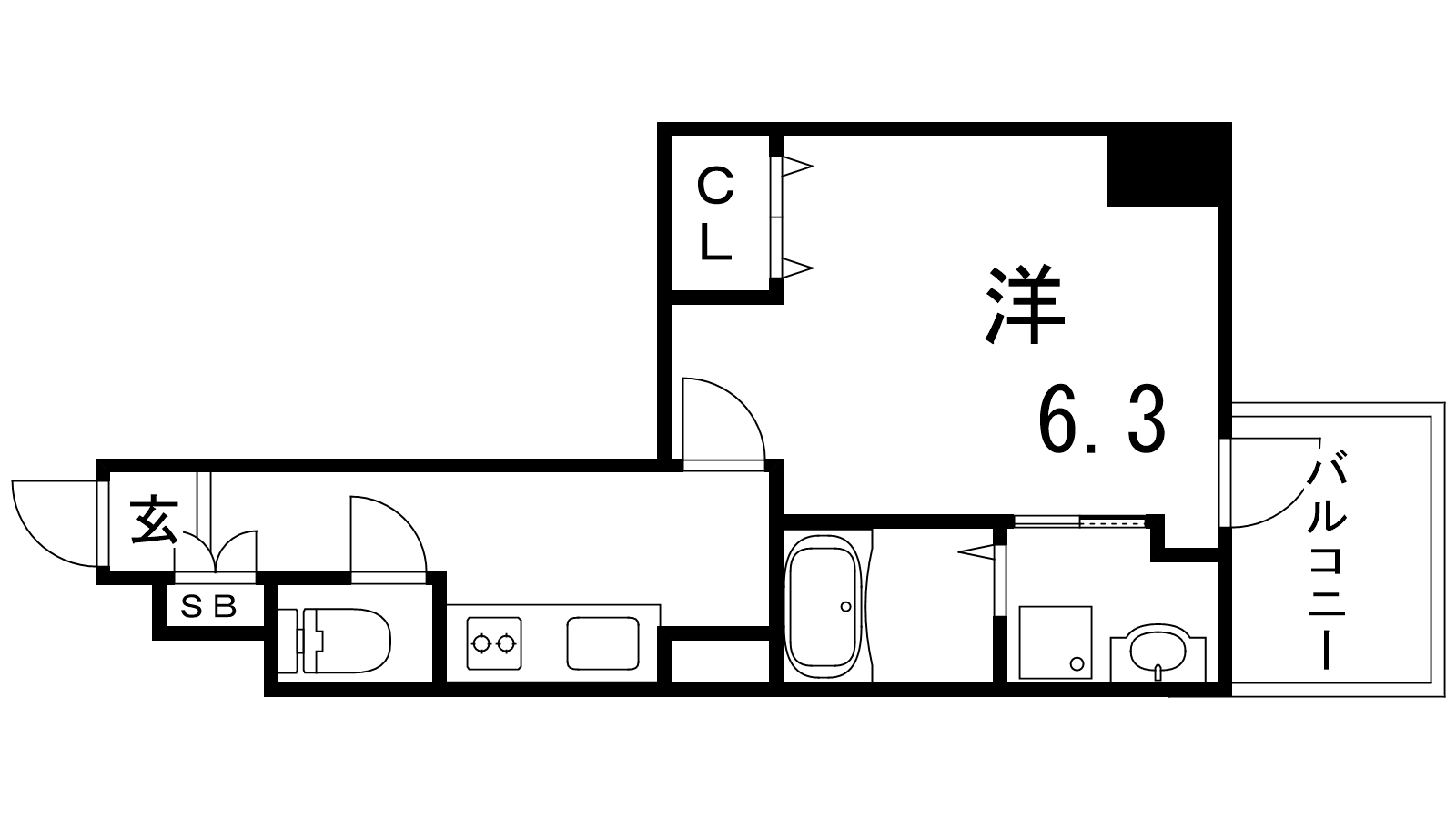 - K2.5帖、洋室6.3帖