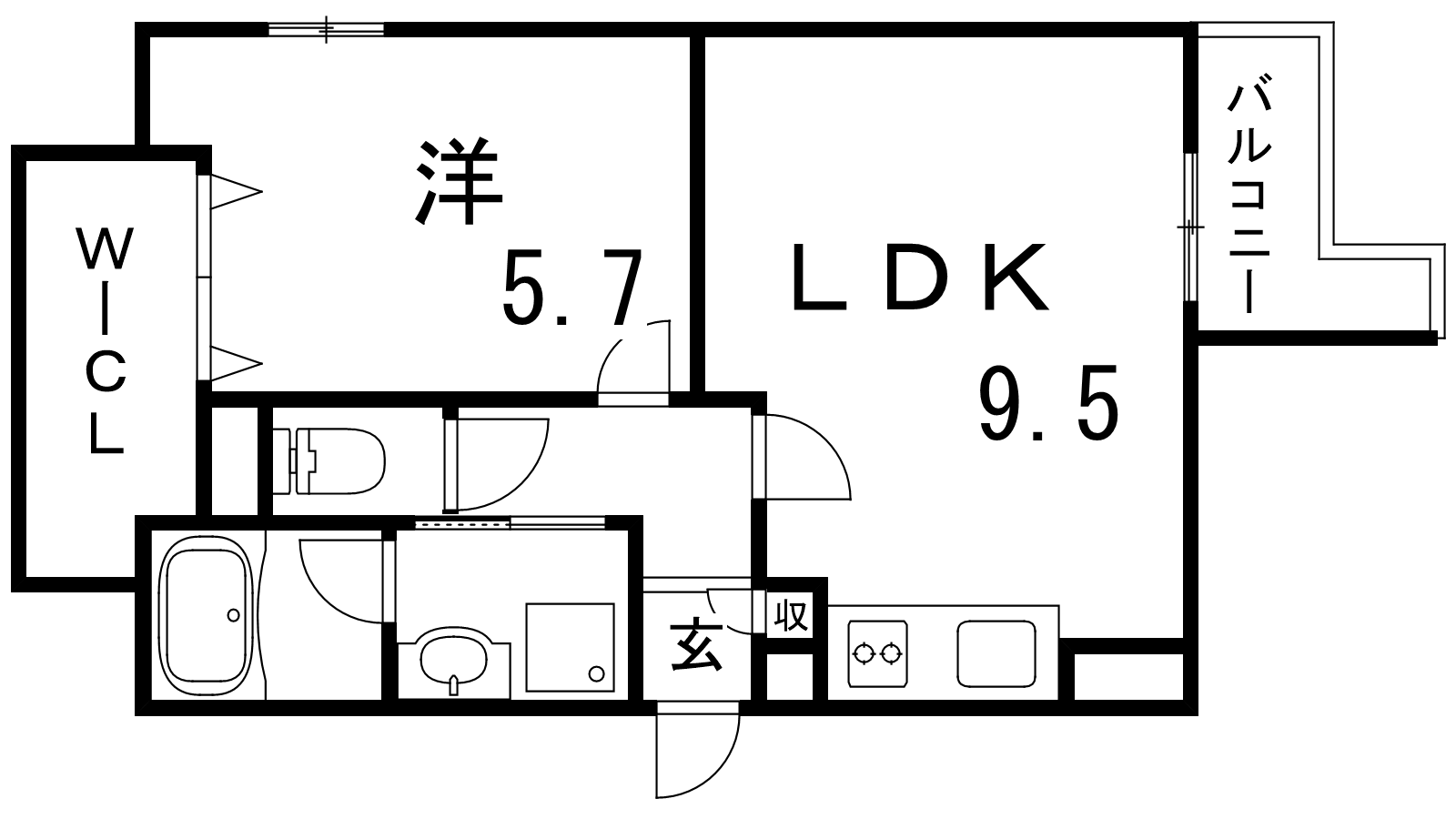- 洋室5.7帖、LDK9.5帖