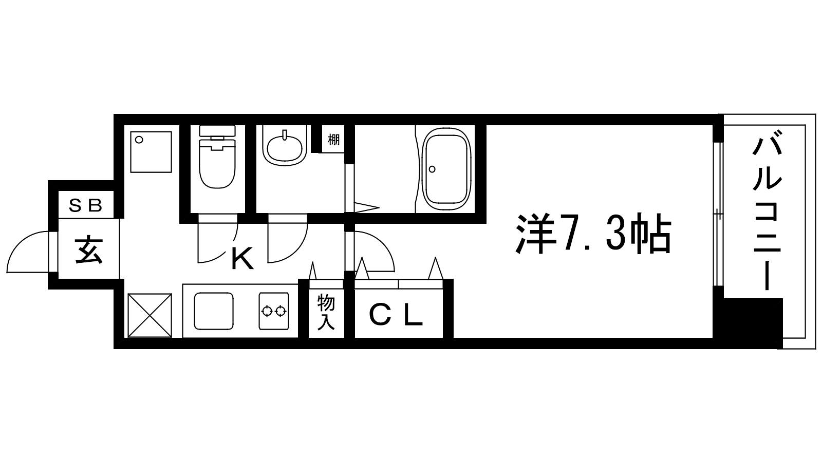 - K2帖、洋室7.3帖