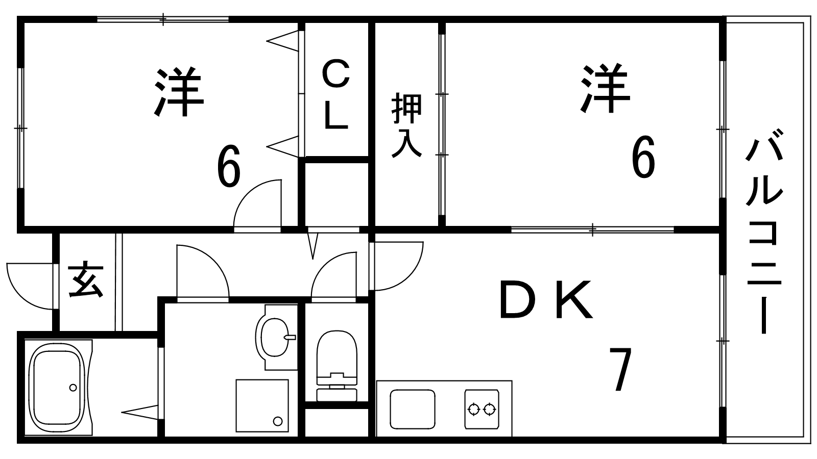 - DK7帖、洋室6帖、洋室6帖