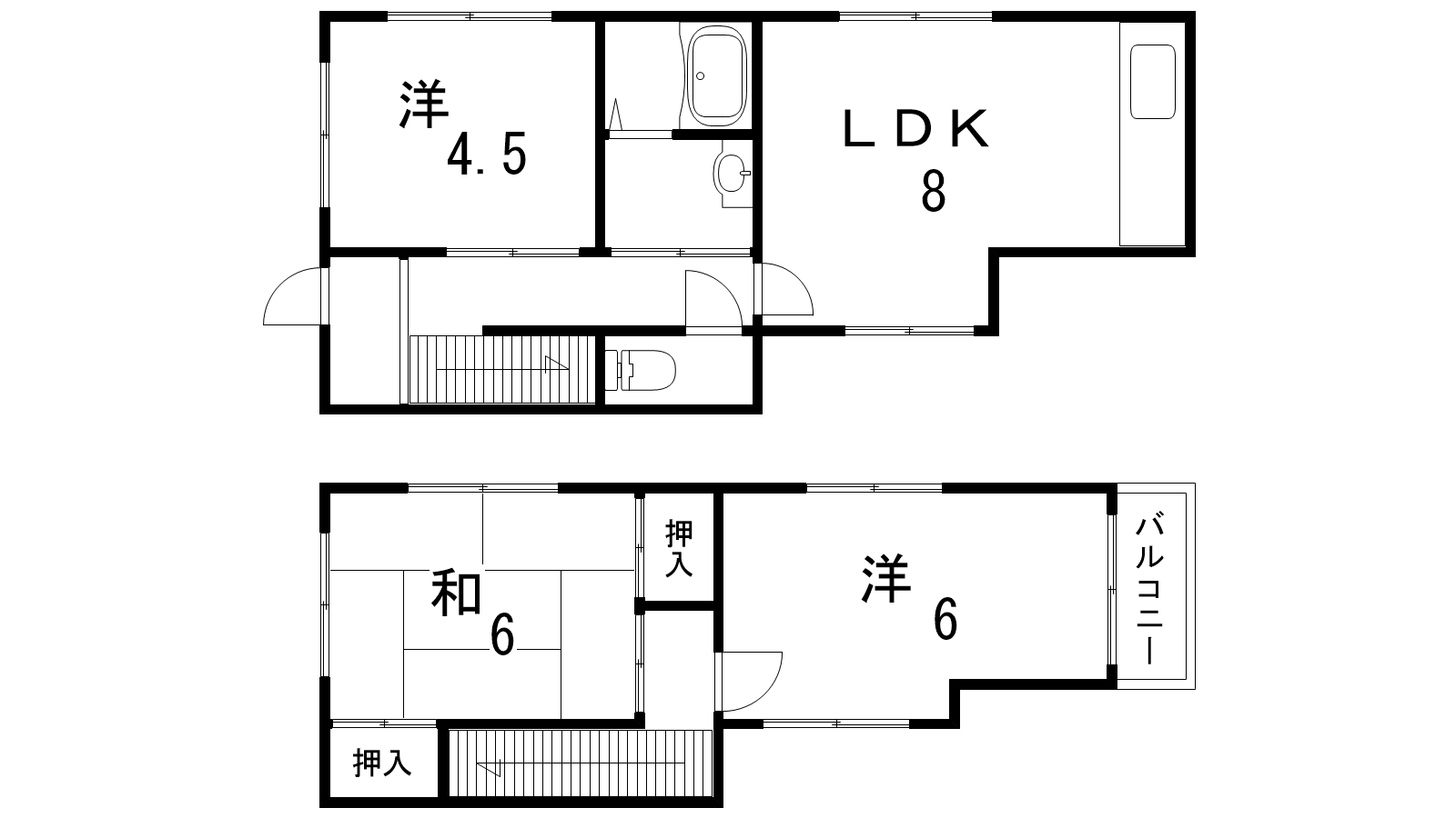 - LDK8帖、洋室6帖、和室6帖、洋室4.5帖