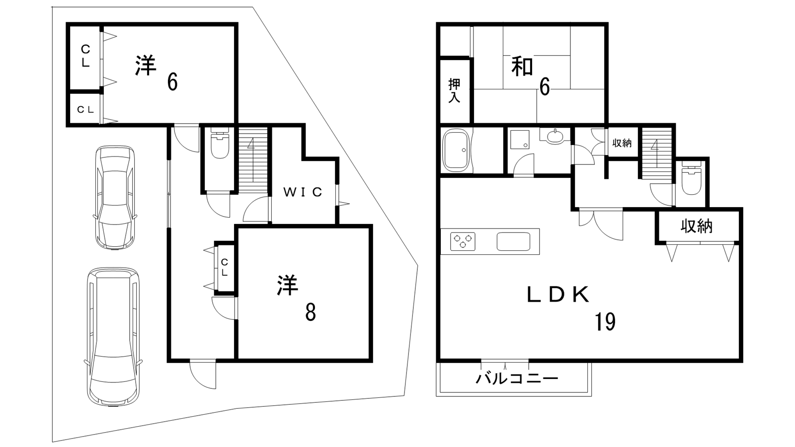 - LDK19帖、和室6帖、洋室6帖、洋室8帖