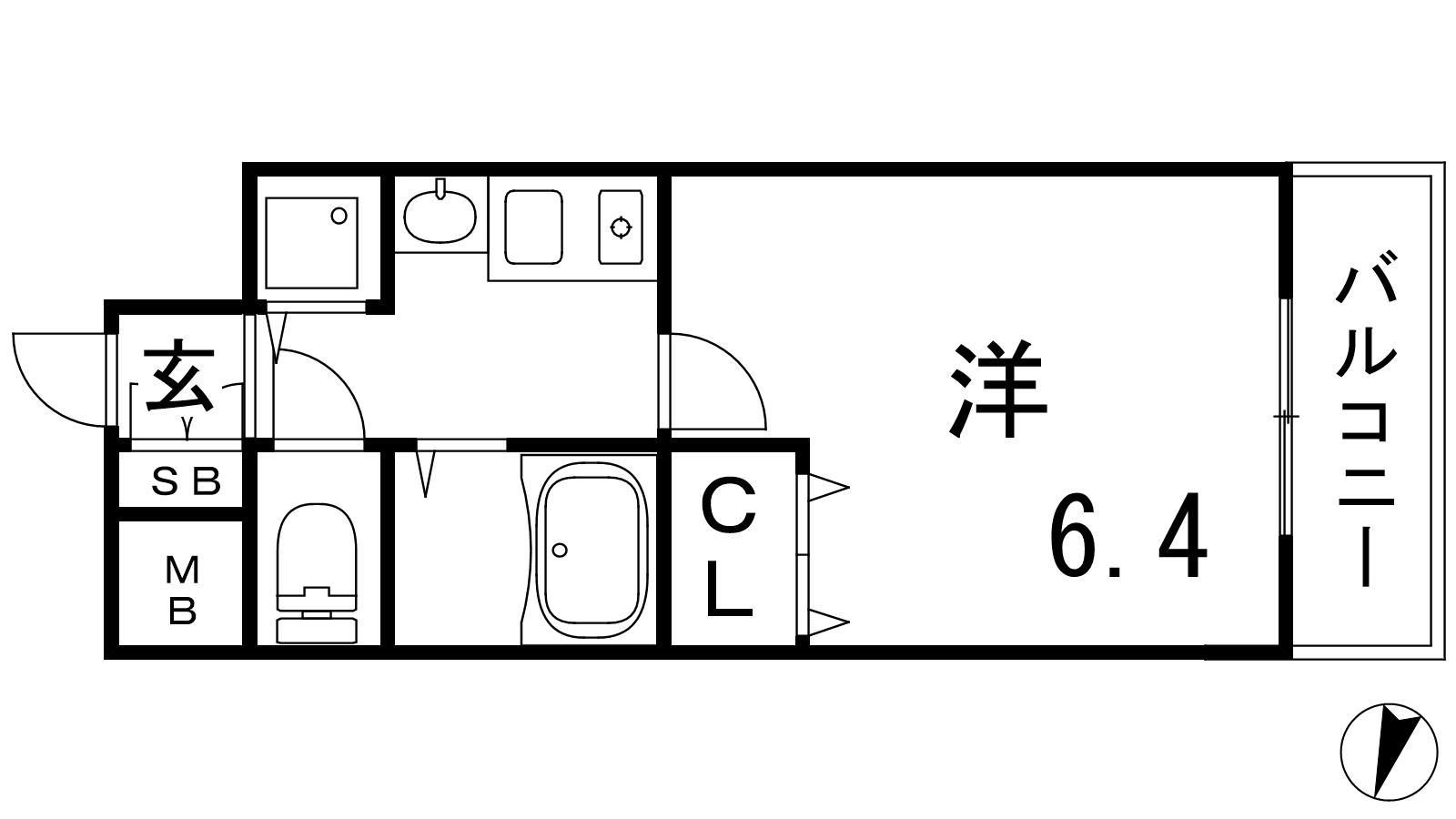 - K2帖、洋室6.4帖