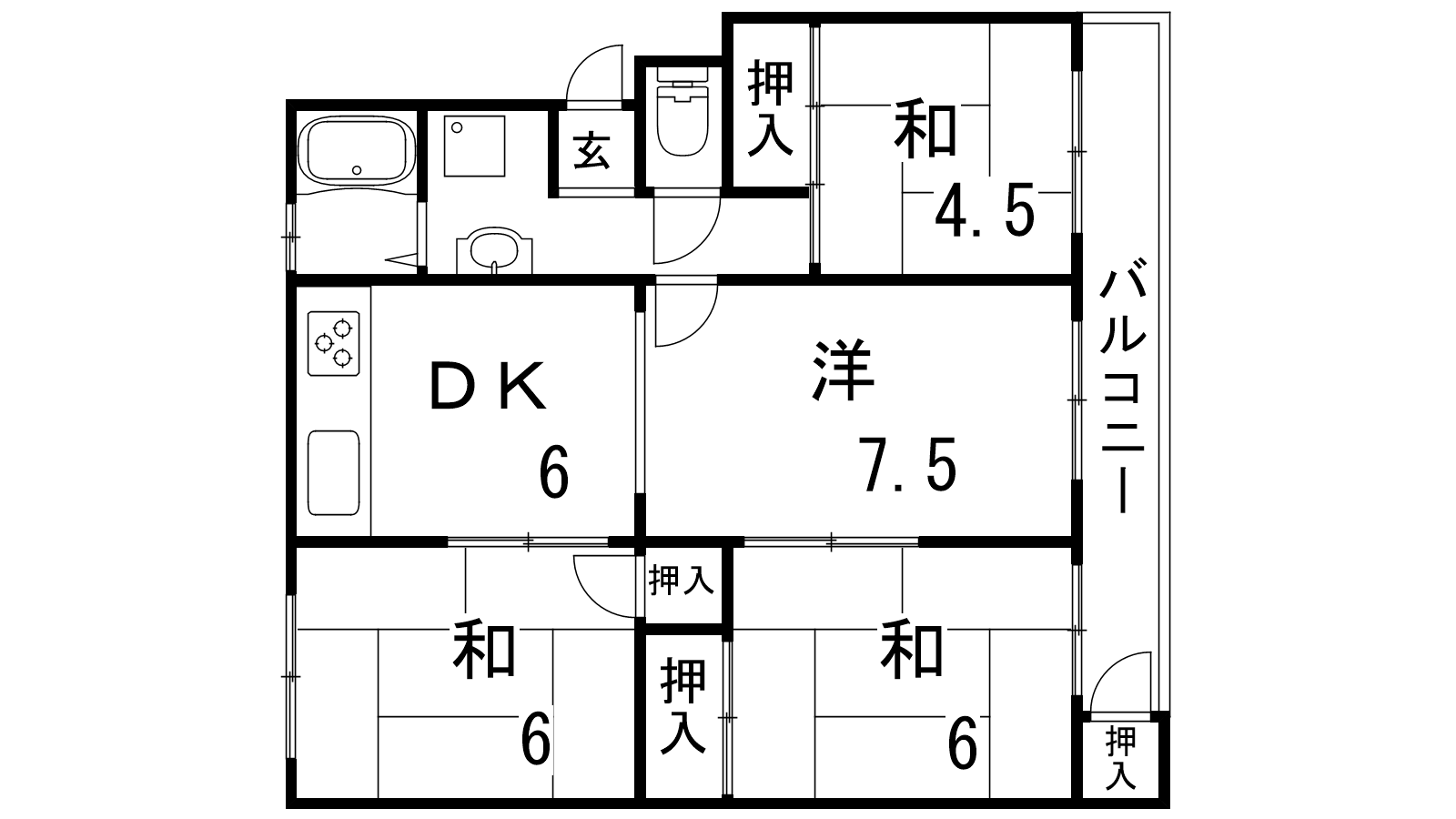 - DK6帖、洋室7.5帖、和室6帖、和室6帖、和室4.5帖