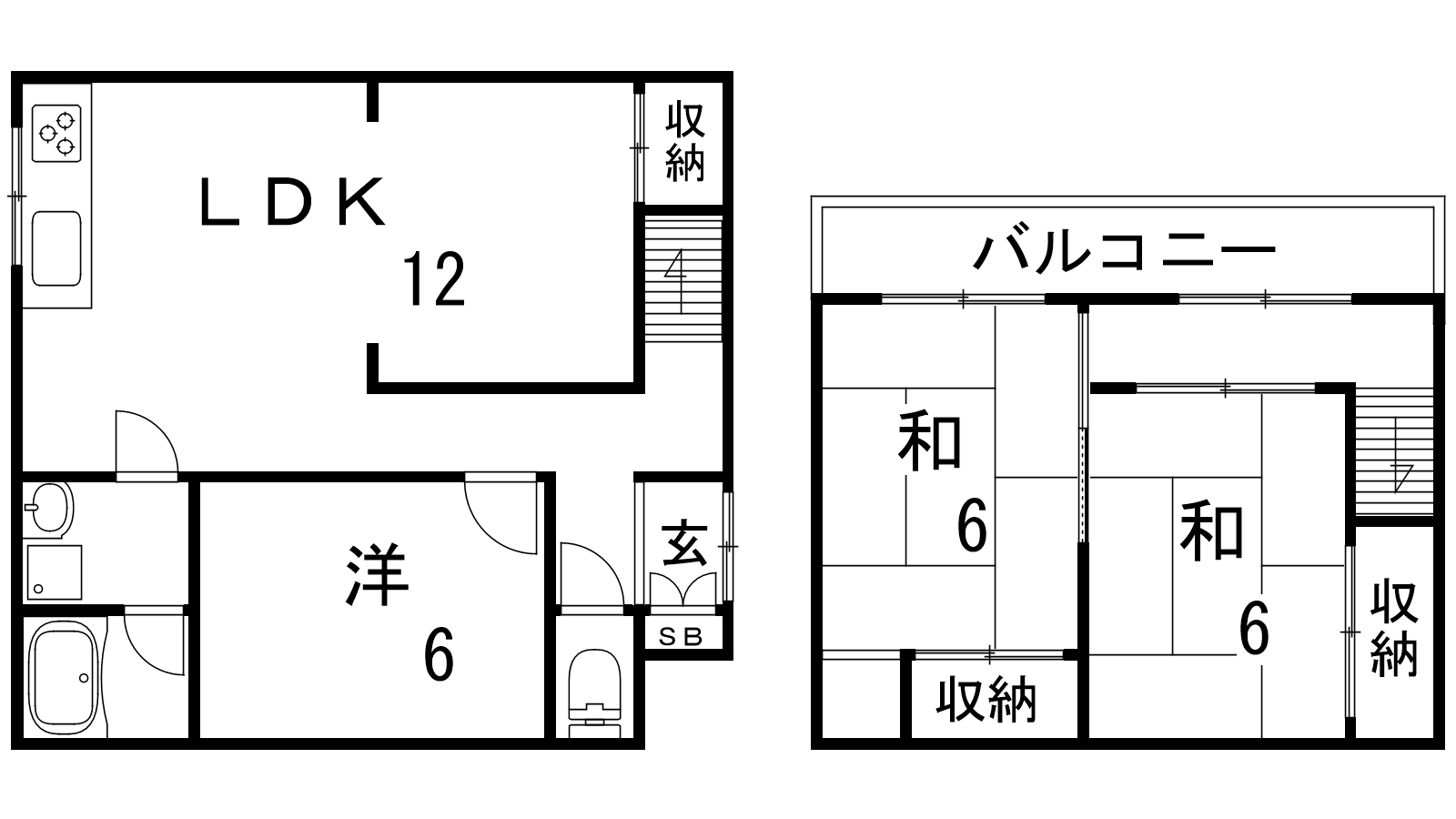 - LDK12帖、洋室6帖、和室6帖、和室6帖