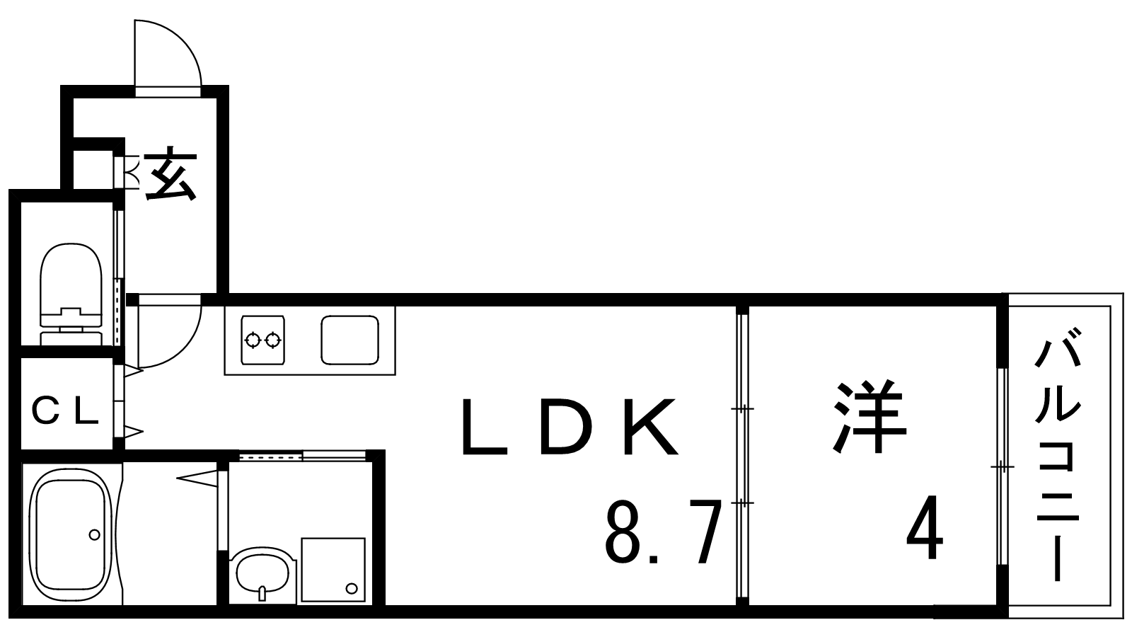 - LDK8.7帖、洋室4帖