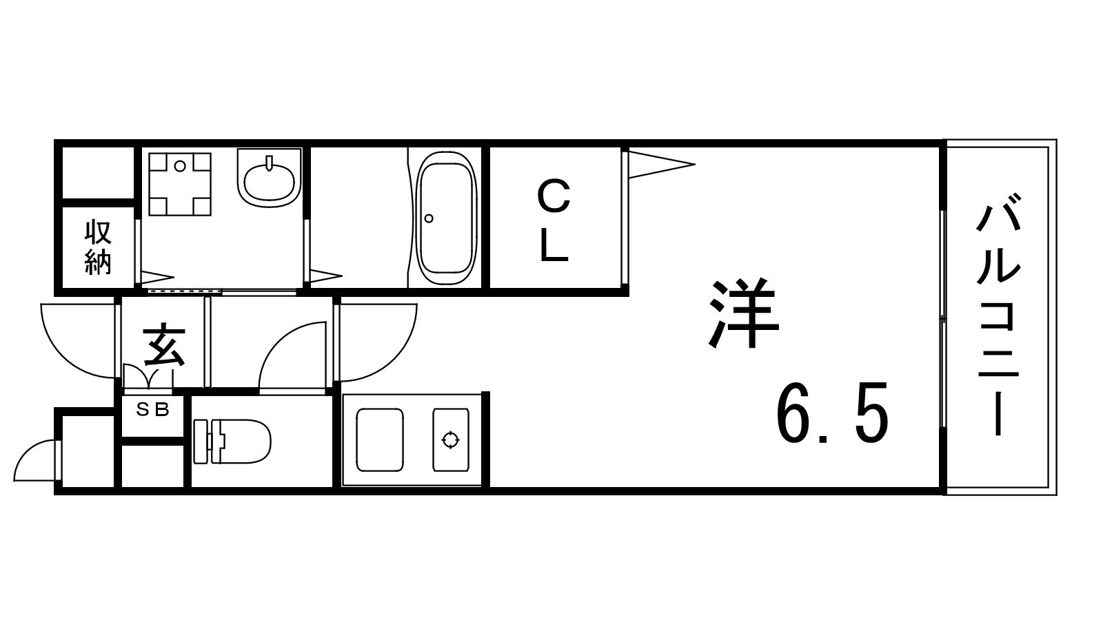 - K2帖、洋室6.5帖