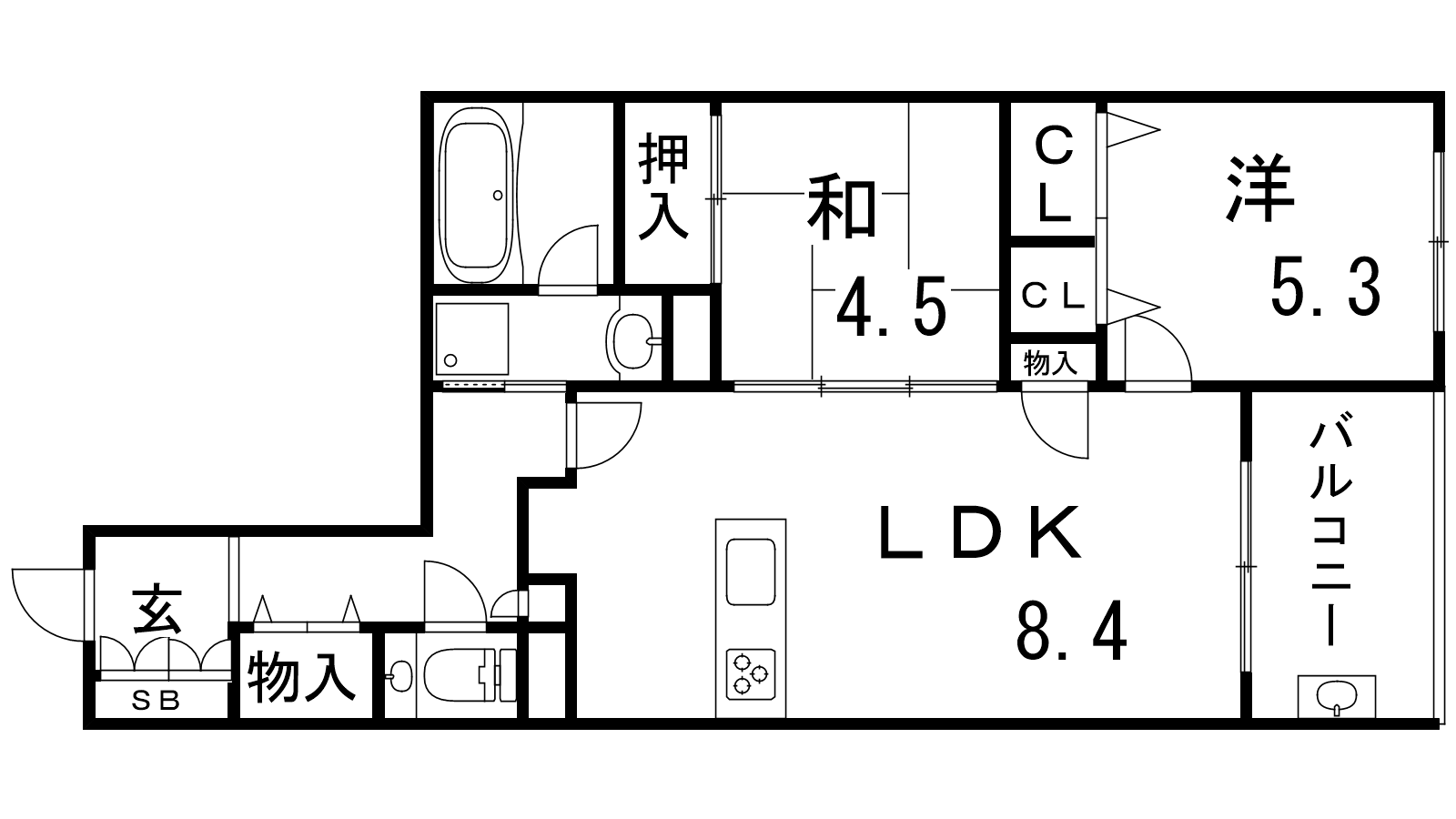 - LDK8.4帖、和室4.5帖、洋室5.3帖
